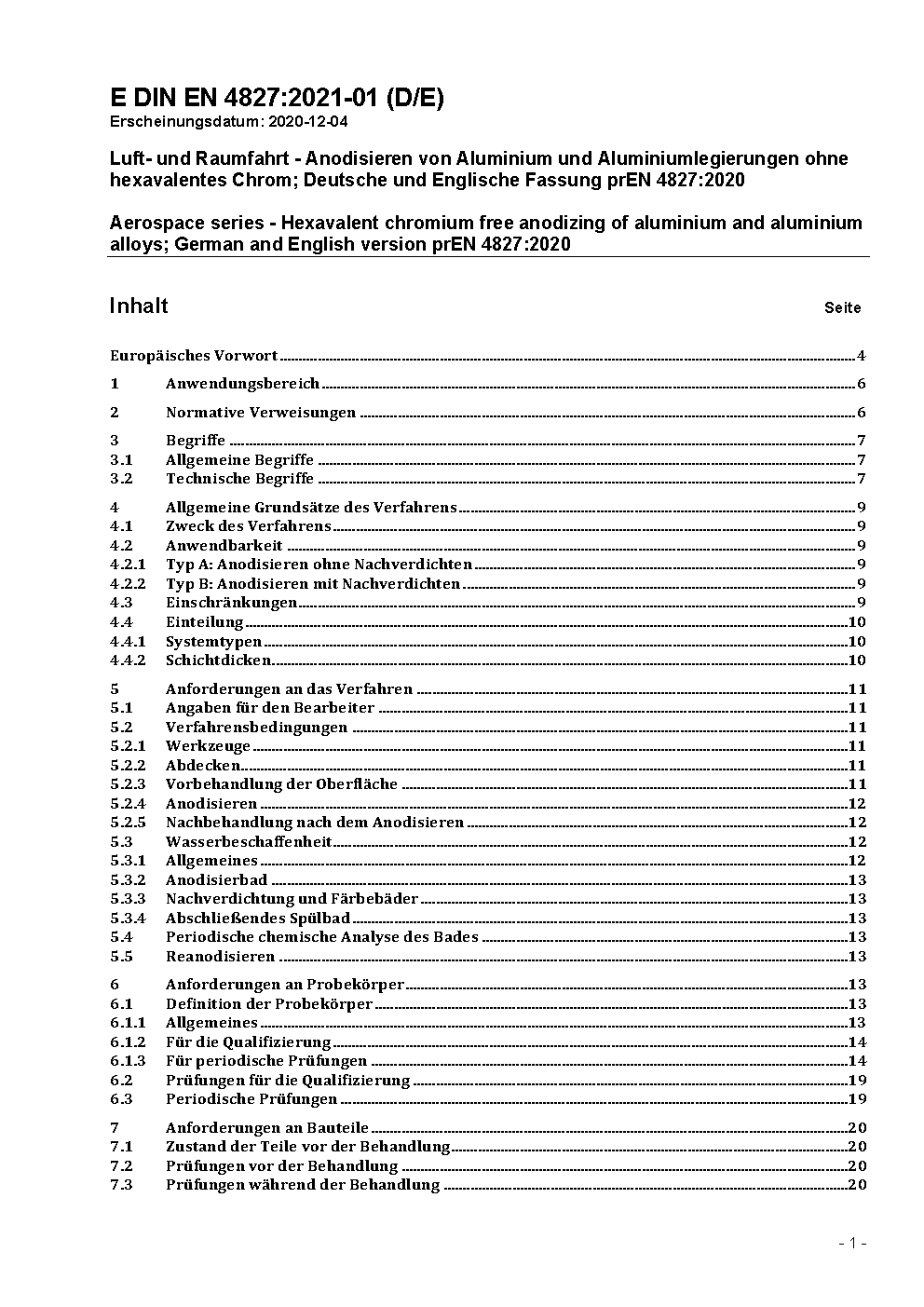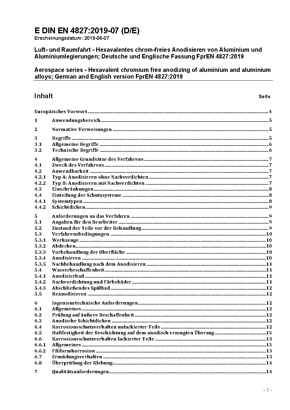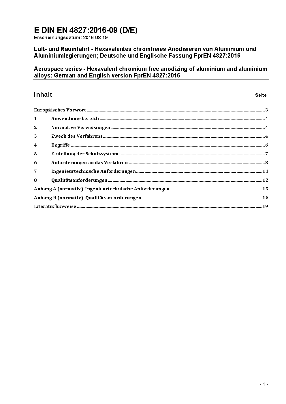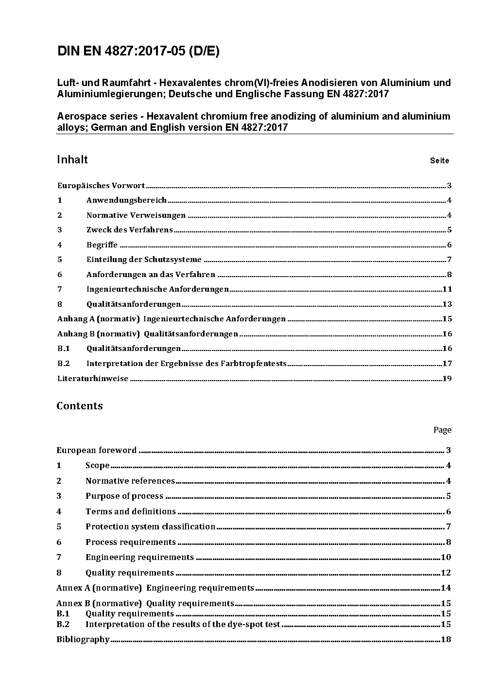 Aerospace series - Hexavalent chromium free anodizing of aluminium and aluminium alloys; German and English version EN 4827:2017