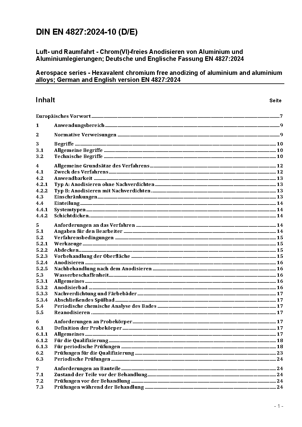 Luft- und Raumfahrt - Hexavalentes chrom(VI)-freies Anodisieren von Aluminium und Aluminiumlegierungen; Deutsche und Englische Fassung EN 4827:2017