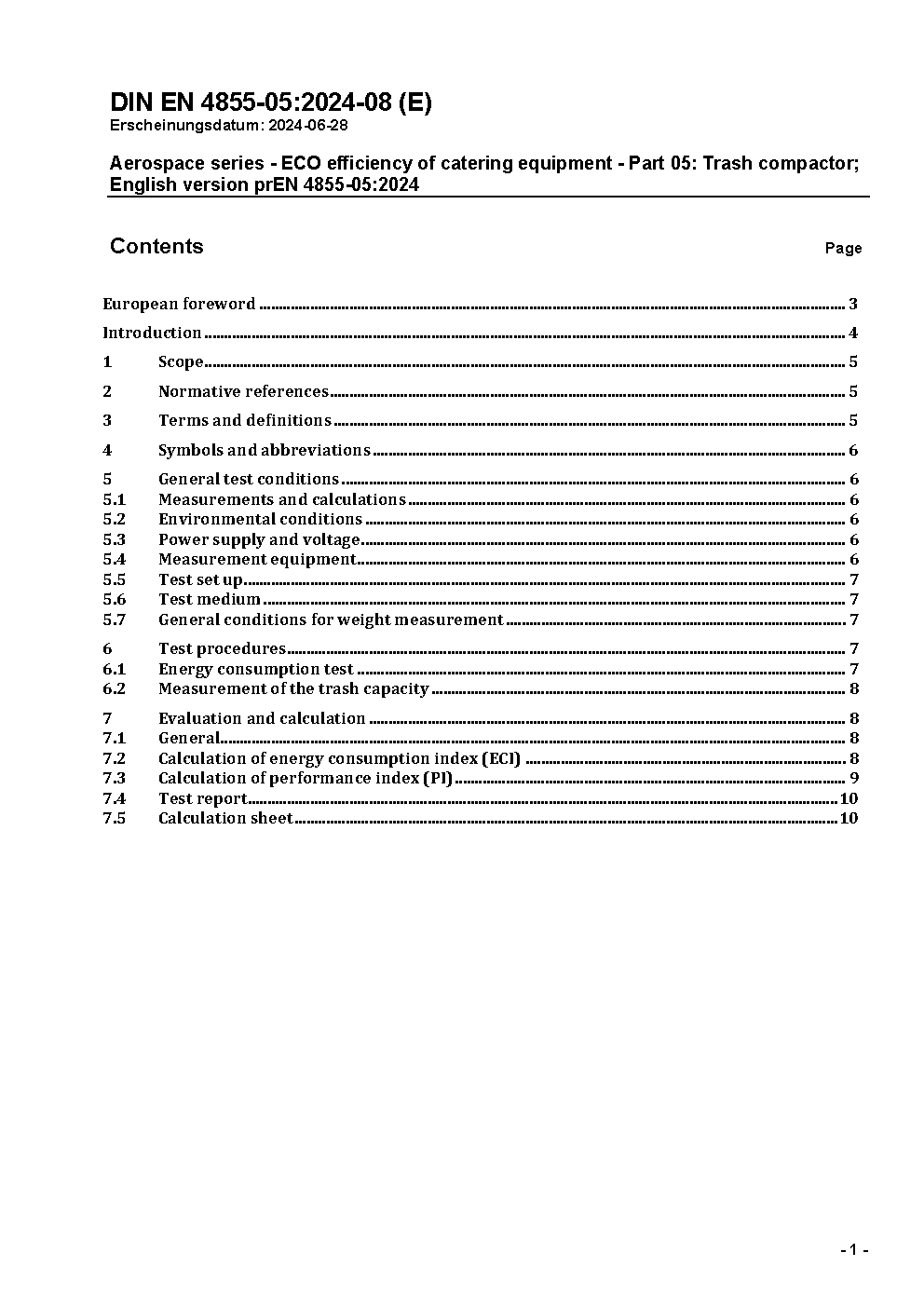 Aerospace series - ECO efficiency of catering equipment - Part 05: Trash compactor; German and English version EN 4855-05:2025