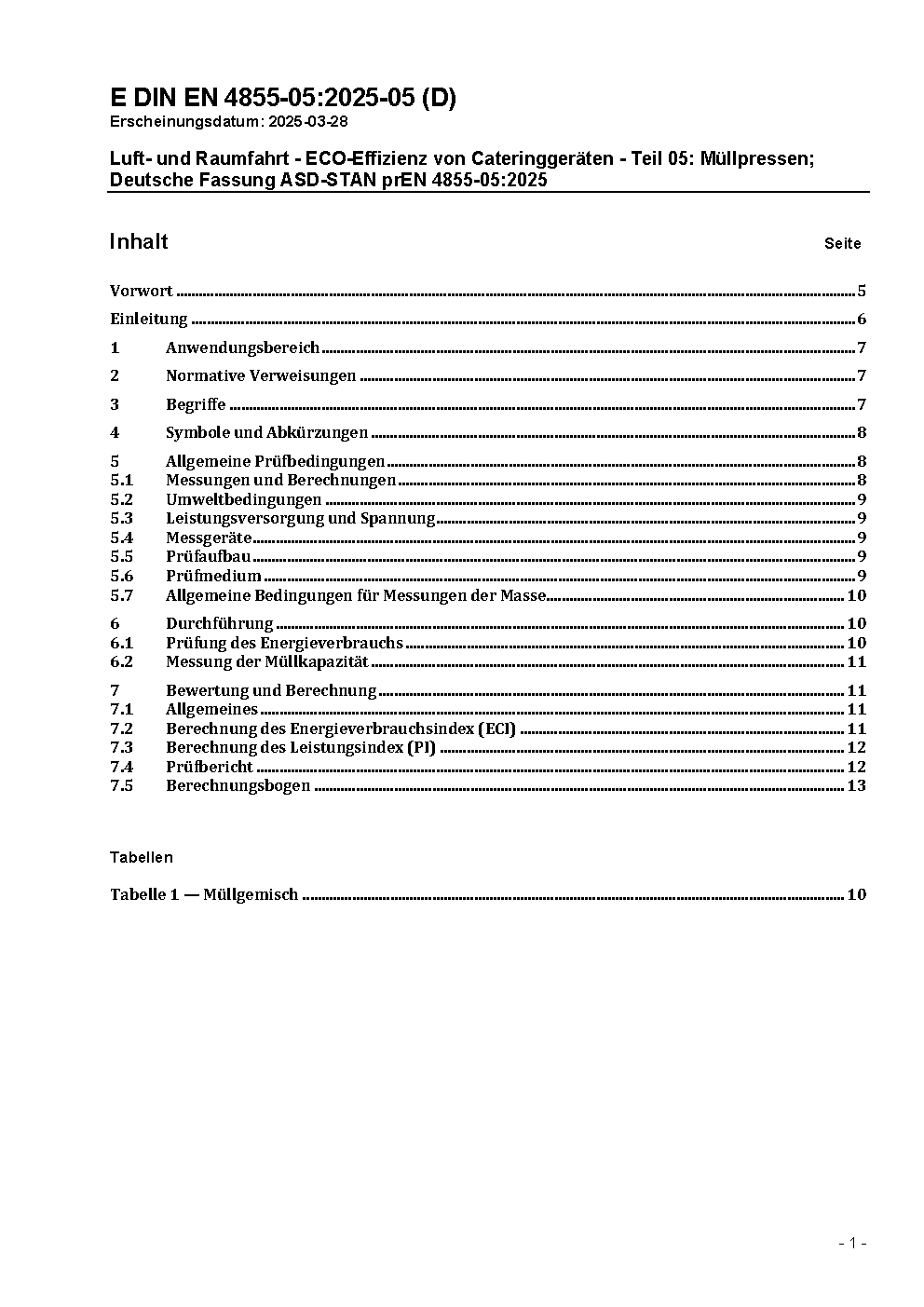 Luft- und Raumfahrt - ECO-Effizienz von Cateringgeräten - Teil 05: Müllpressen; Deutsche und Englische Fassung EN 4855-05:2025