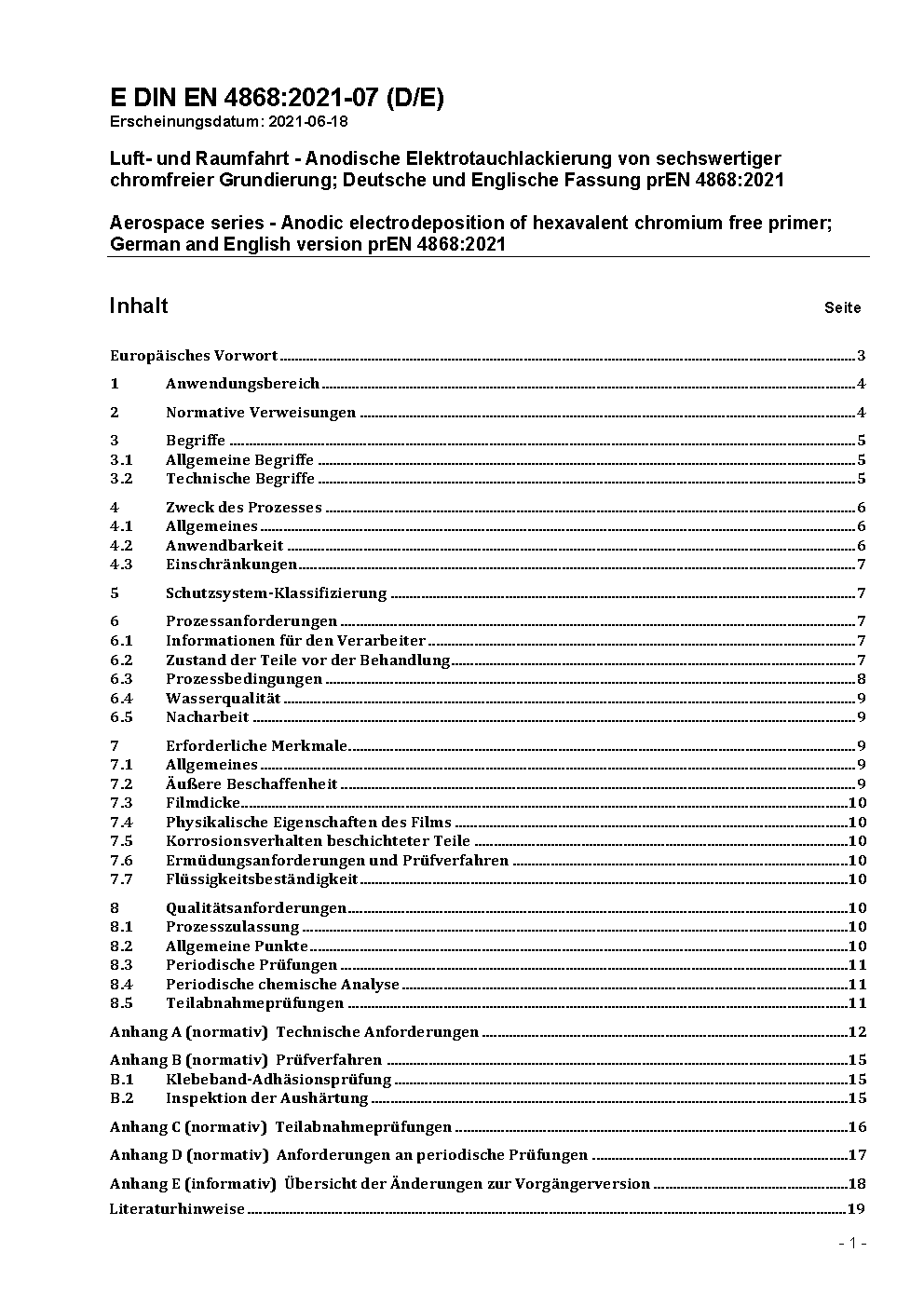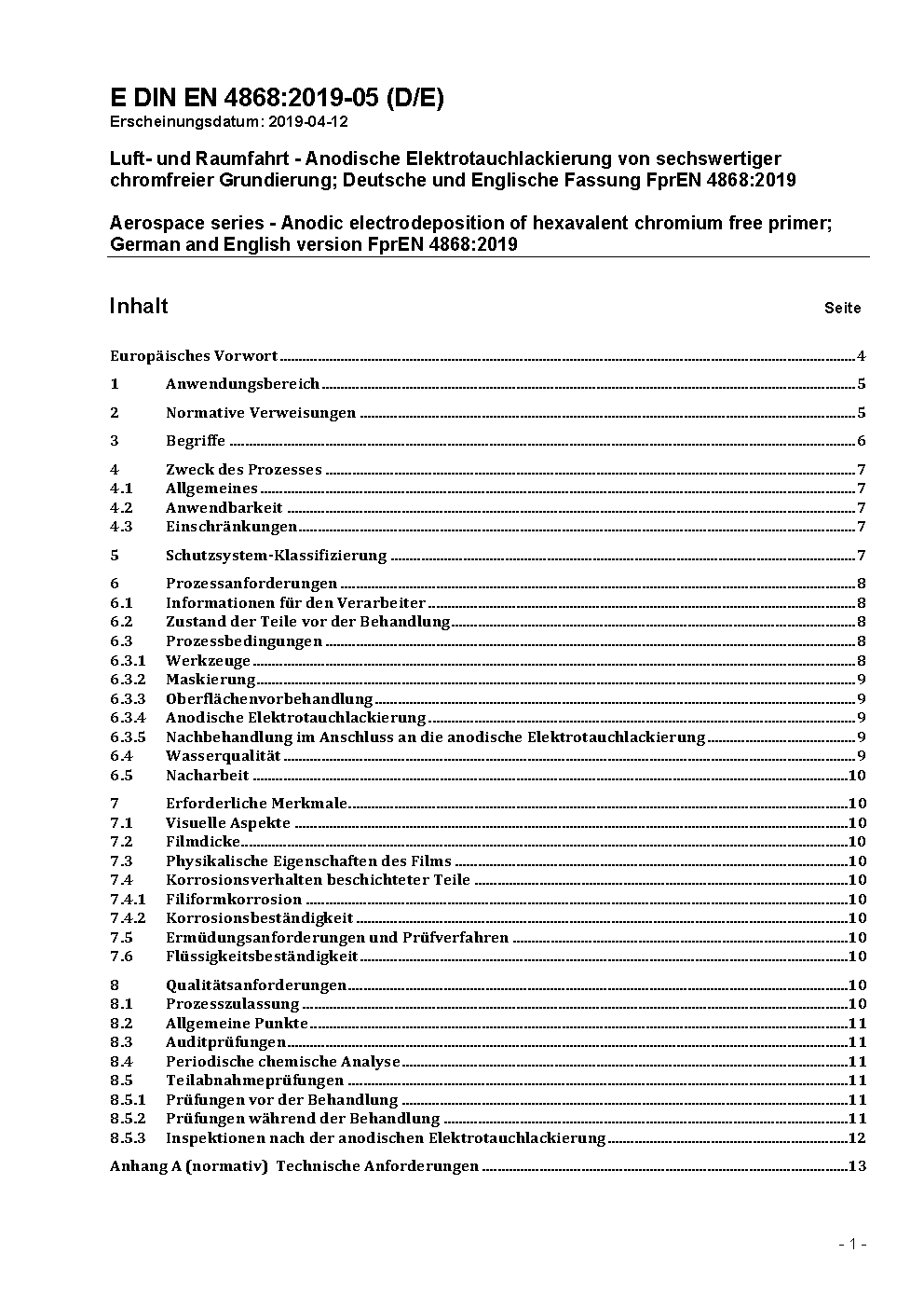 Luft- und Raumfahrt - Anodische Elektrotauchlackierung von chrom(VI)-freier Grundierung; Deutsche und Englische Fassung EN 4868:2023