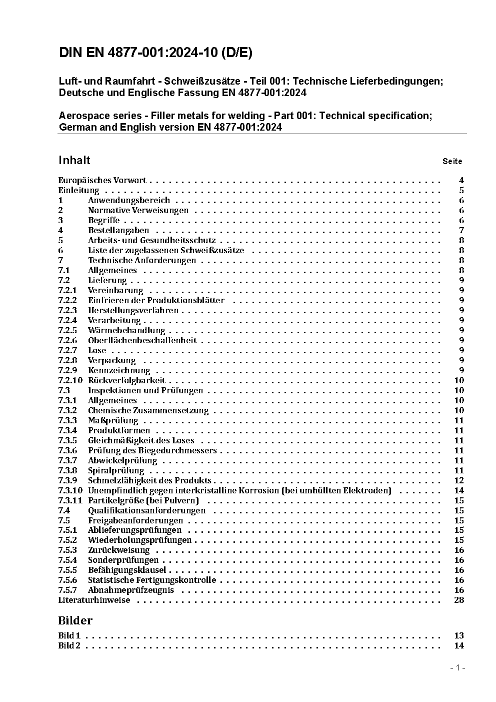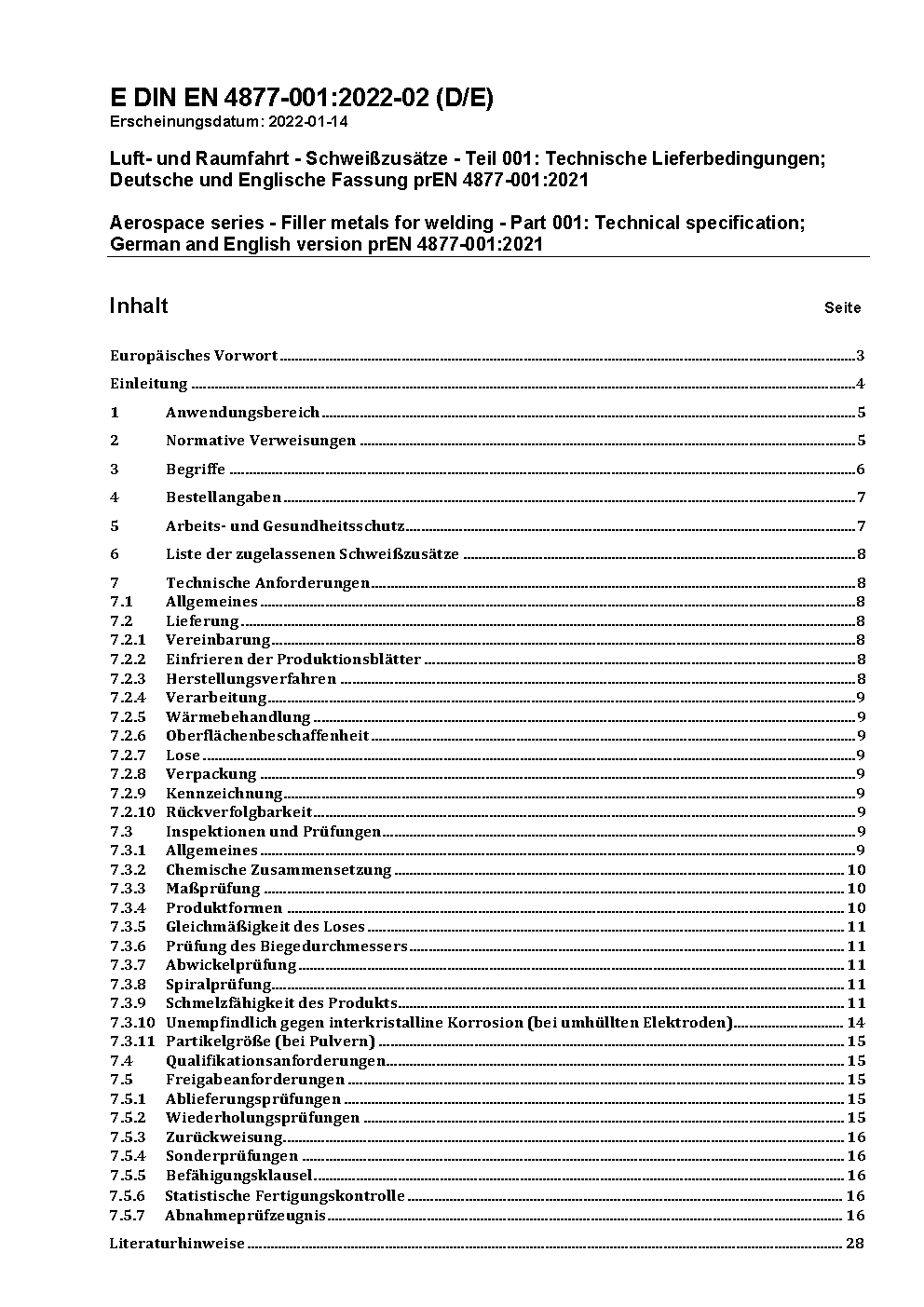 Luft- und Raumfahrt - Schweißzusätze - Teil 001: Technische Lieferbedingungen; Deutsche und Englische Fassung prEN 4877-001:2021