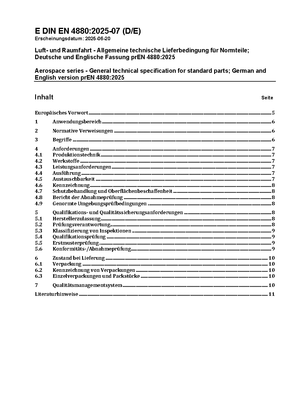 Luft- und Raumfahrt - Allgemeine technische Lieferbedingung für Normteile; Deutsche und Englische Fassung EN 4880:2023