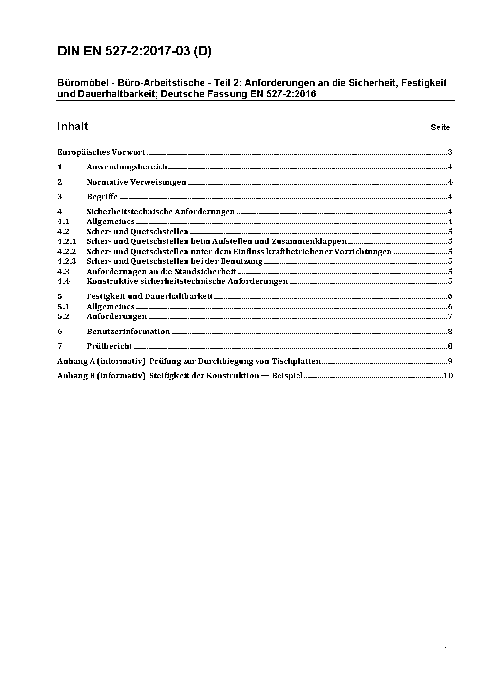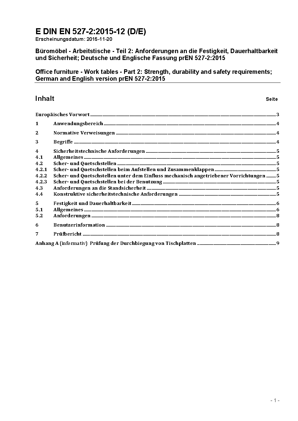 Büromöbel - Arbeitstische - Teil 2: Anforderungen an die Sicherheit, Festigkeit und Dauerhaltbarkeit; Deutsche Fassung prEN 527-2:2014