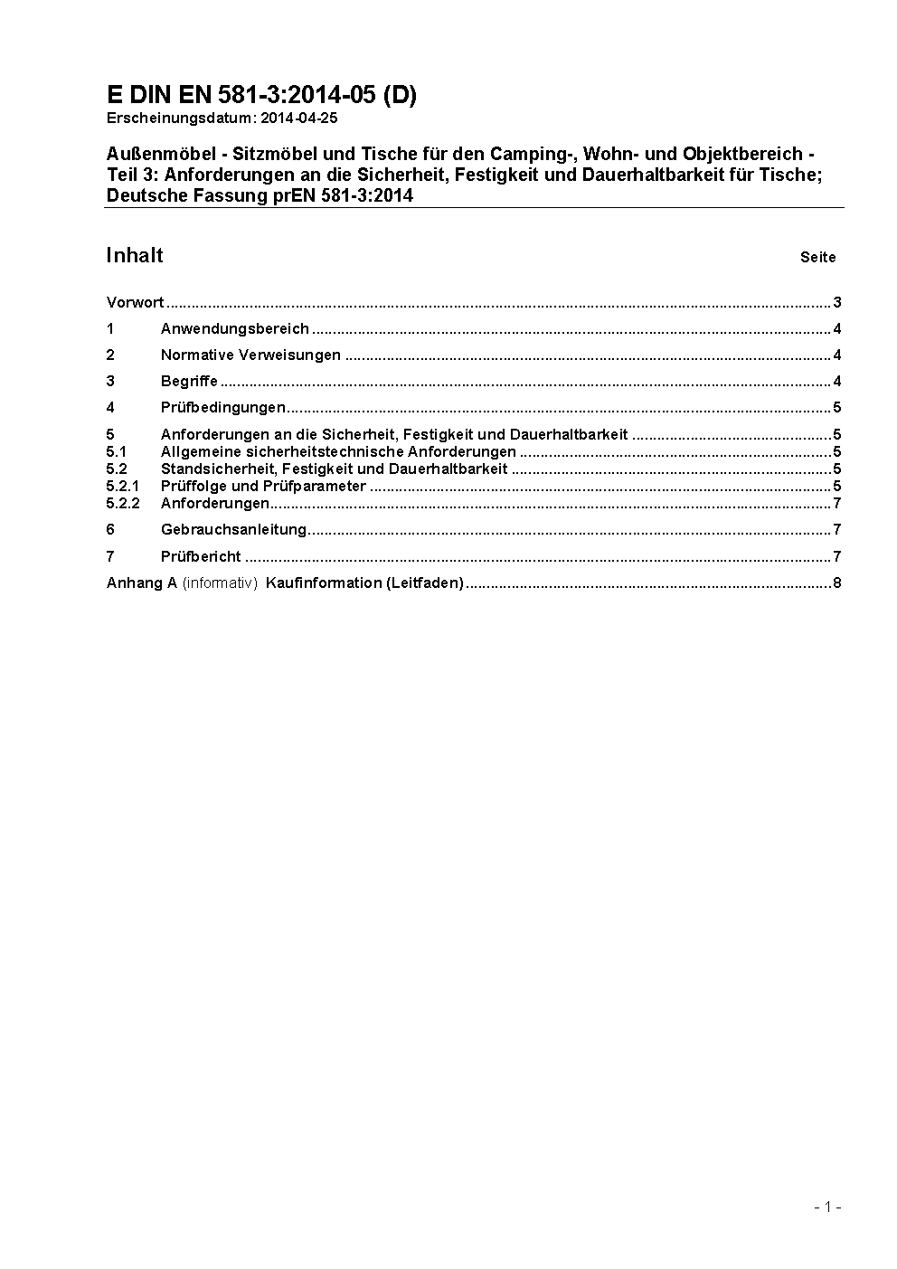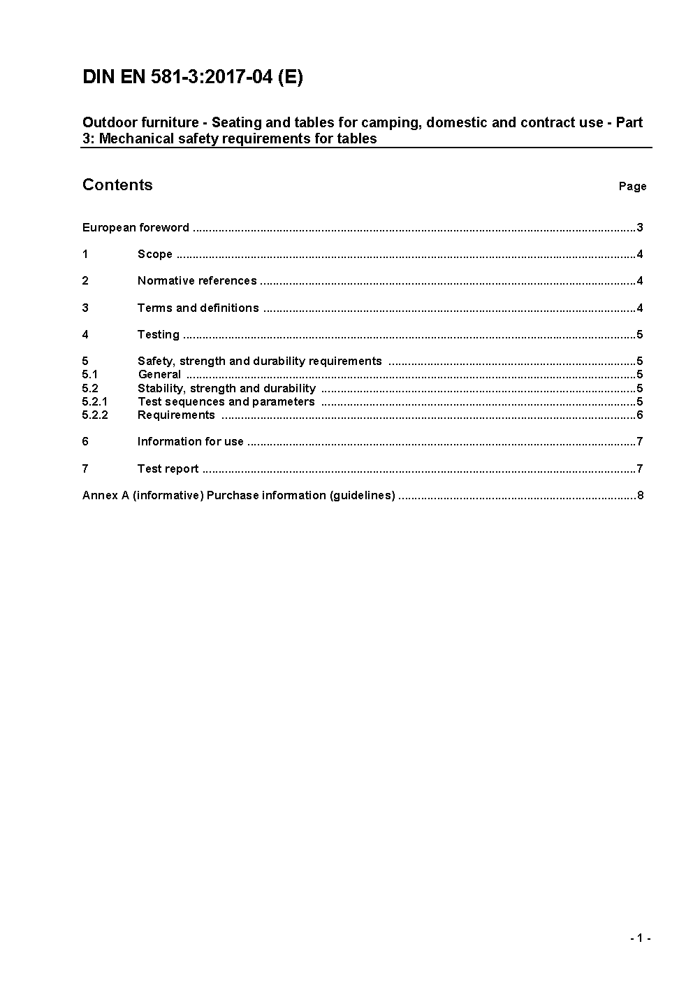 Outdoor furniture - Seating and tables for camping, domestic and contract use - Part 3: Mechanical safety requirements for tables; German version EN 581-3:2017