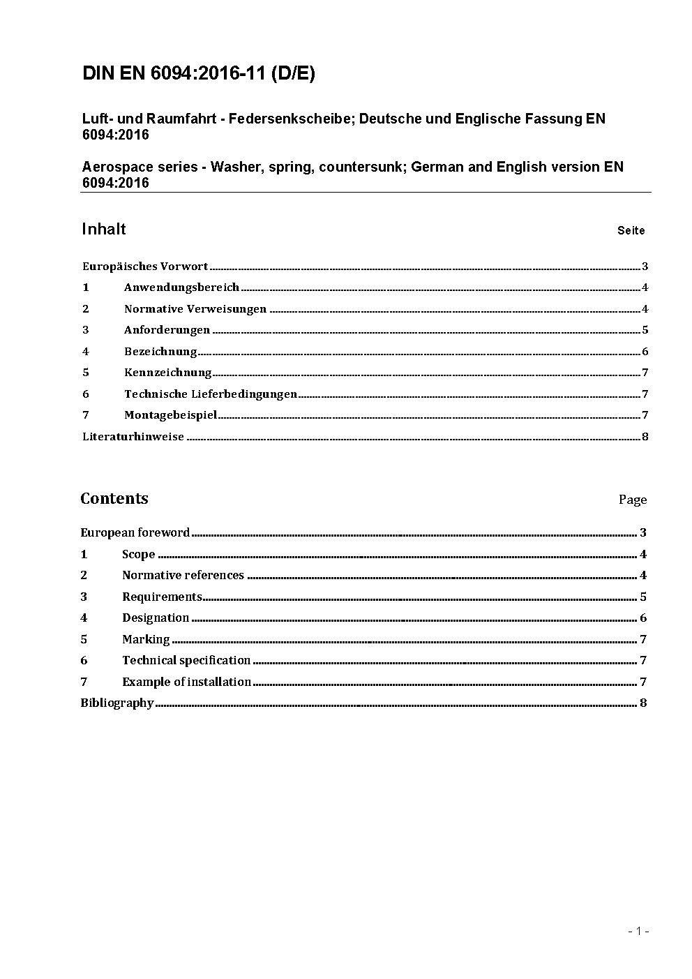 Aerospace series - Washer, spring, countersunk; German and English version FprEN 6094:2015