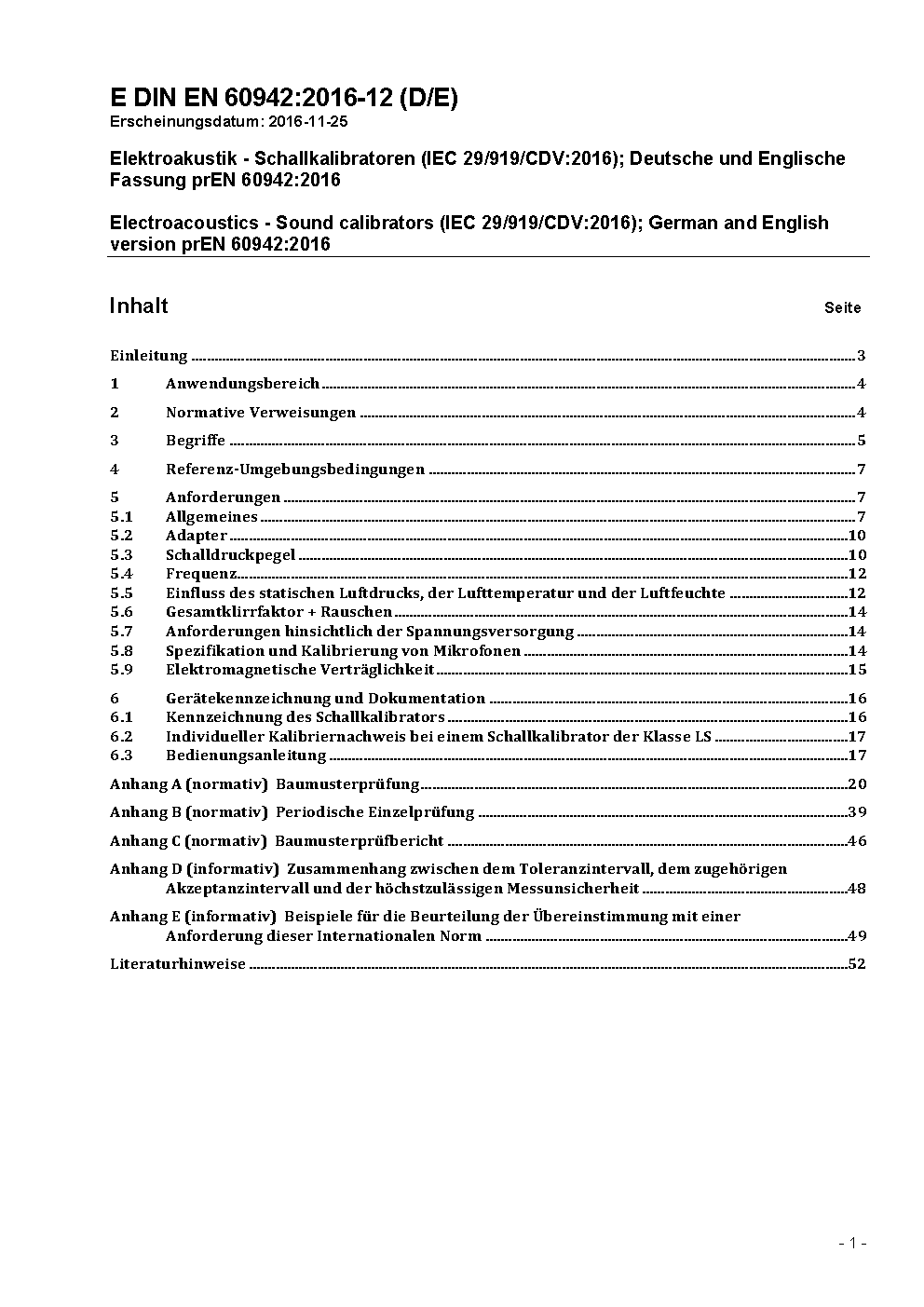 Elektroakustik - Schallkalibratoren (IEC 29/493/CDV:2001); Deutsche Fassung prEN 60942:2001