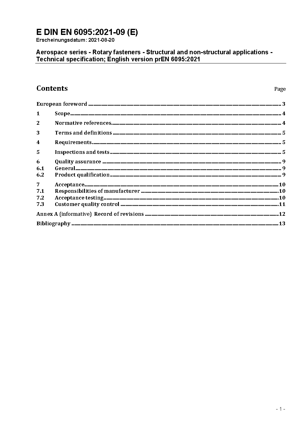 Aerospace series - Rotary fasteners - Structural and non-structural applications - Technical specification; English version prEN 6095:2021
