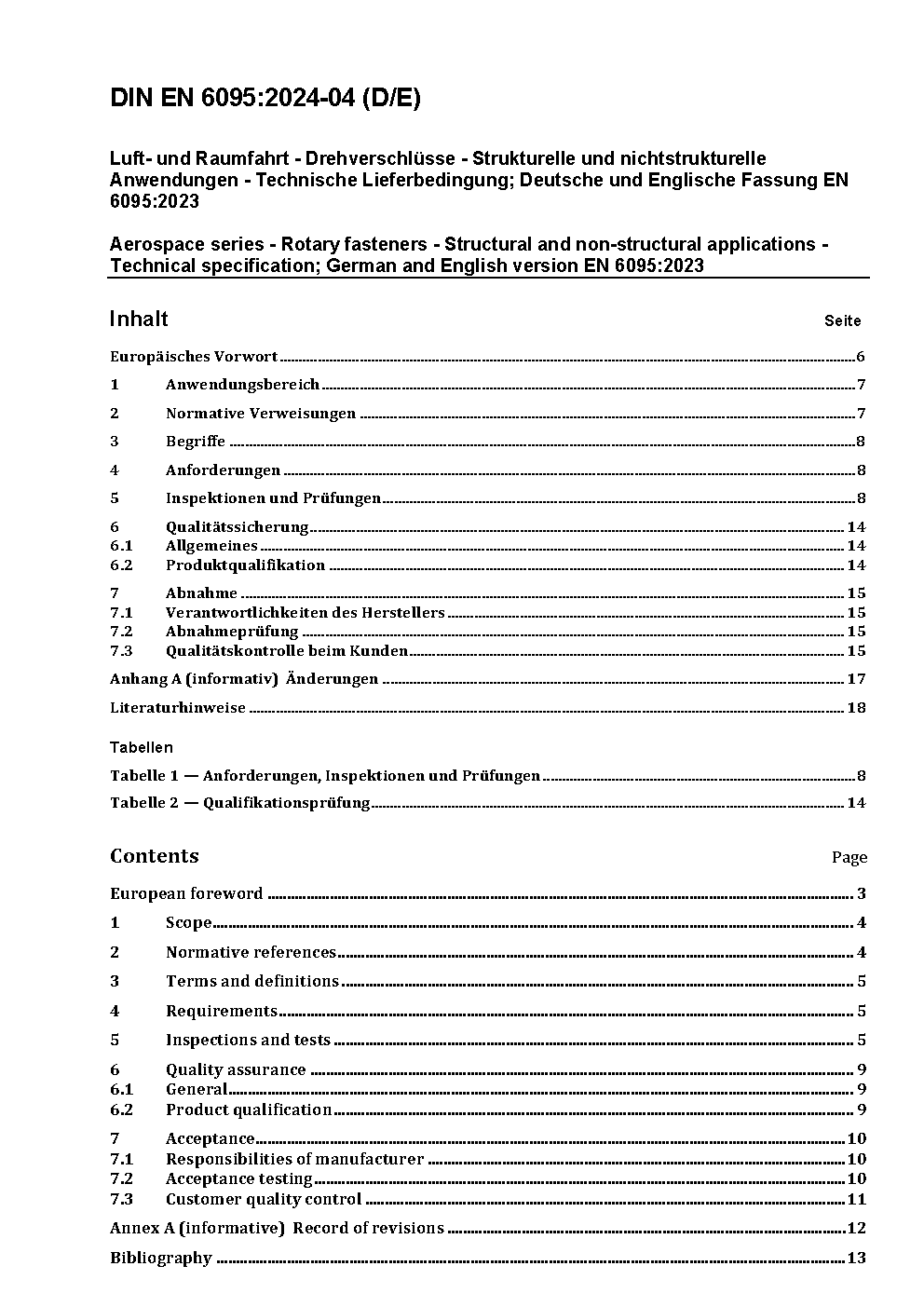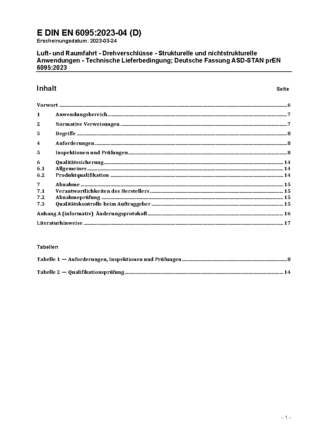 Luft- und Raumfahrt - Drehverschlüsse - Strukturelle und nichtstrukturelle Anwendungen - Technische Lieferbedingung; Englische Fassung prEN 6095:2021