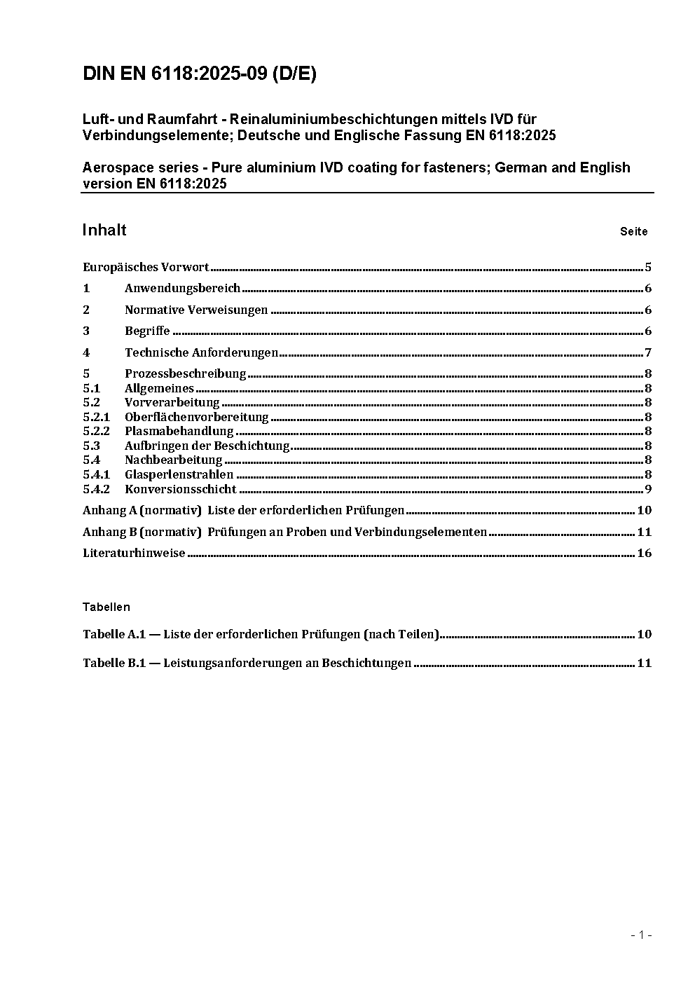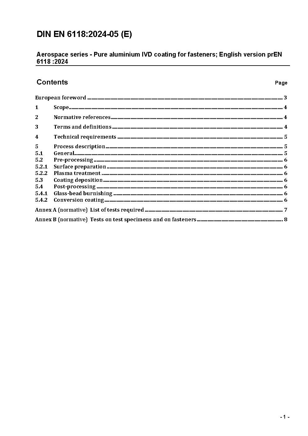Aerospace series - Pure aluminium IVD coating for fasteners; German version ASD-STAN prEN 6118:2024
