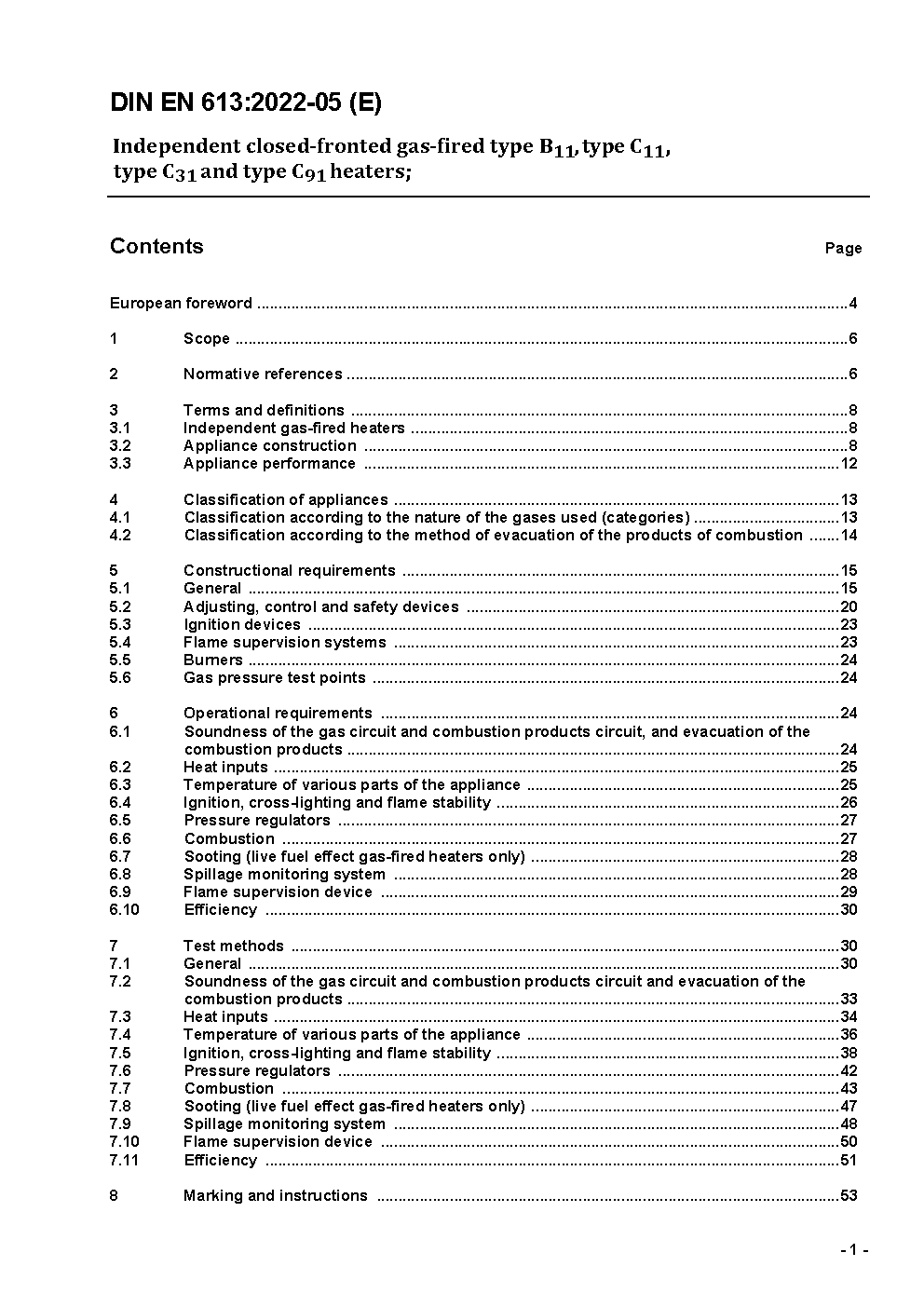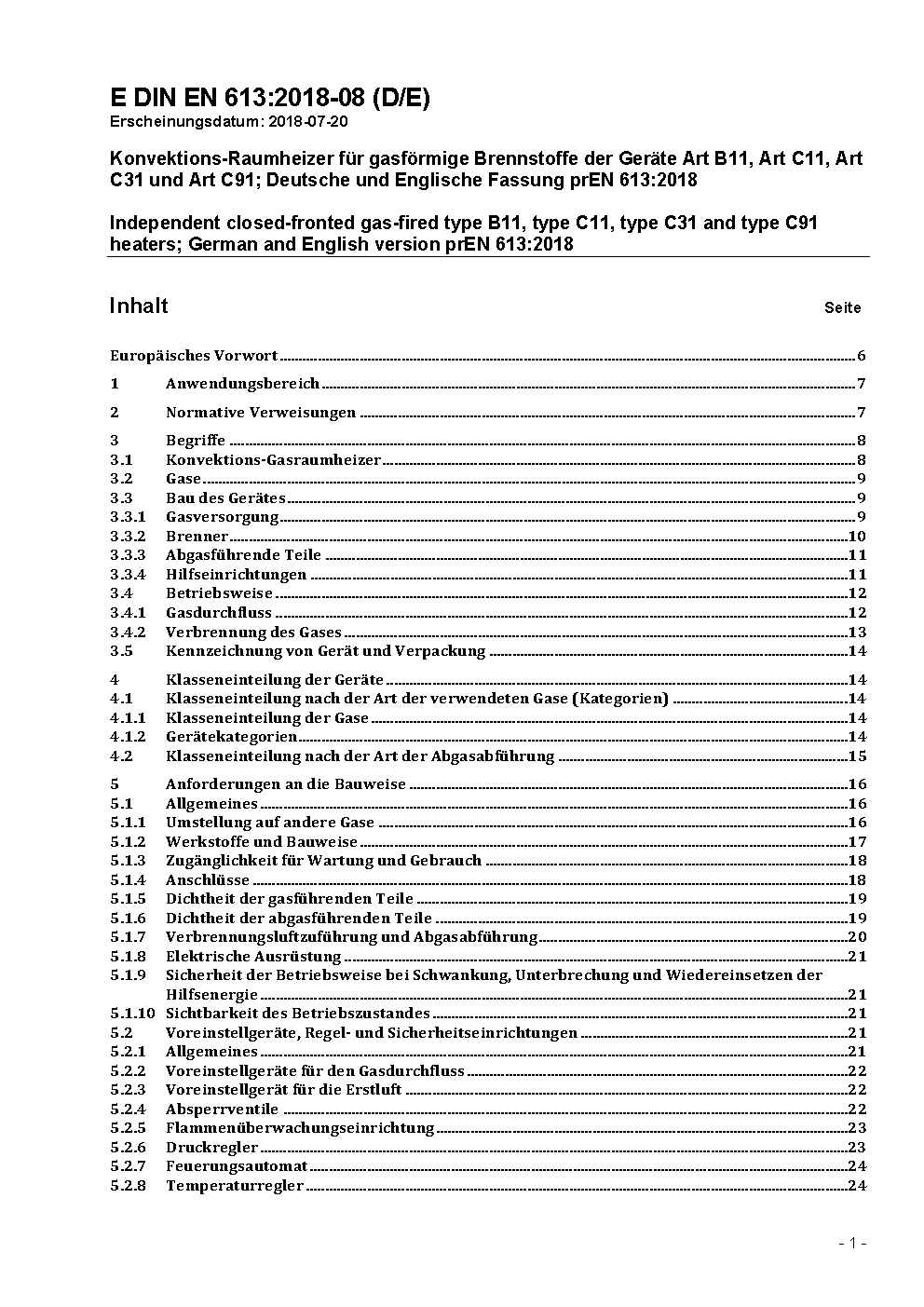 Independent gas-fired convection heaters; German version EN 613:2000