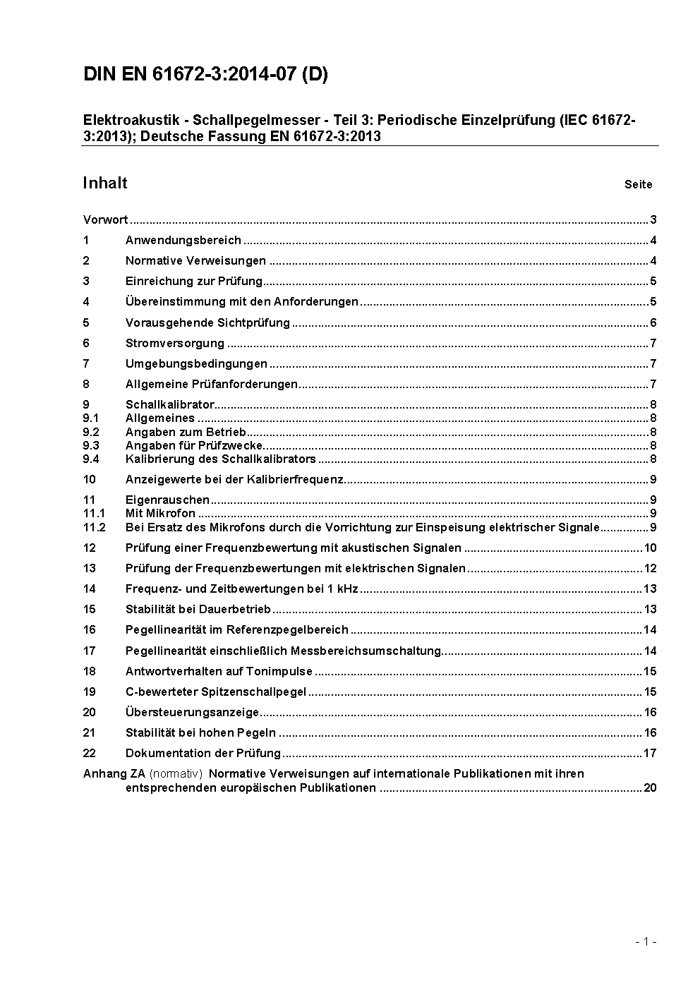 Elektroakustik - Schallpegelmesser - Teil 3: Periodische Einzelprüfung (IEC 61672-3:2013); Deutsche Fassung EN 61672-3:2013