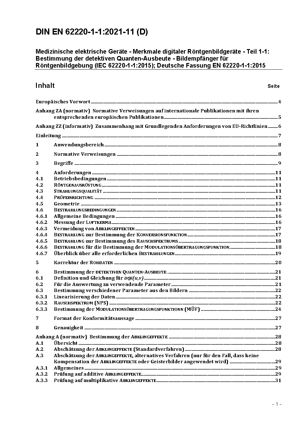 Medizinische elektrische Geräte - Merkmale digitaler Röntgenbildgeräte - Teil 1-1: Bestimmung der detektiven Quanten-Ausbeute - Bildempfänger für Röntgenbildgebung (IEC 62220-1-1:2015); Deutsche Fassung EN 62220-1-1:2015