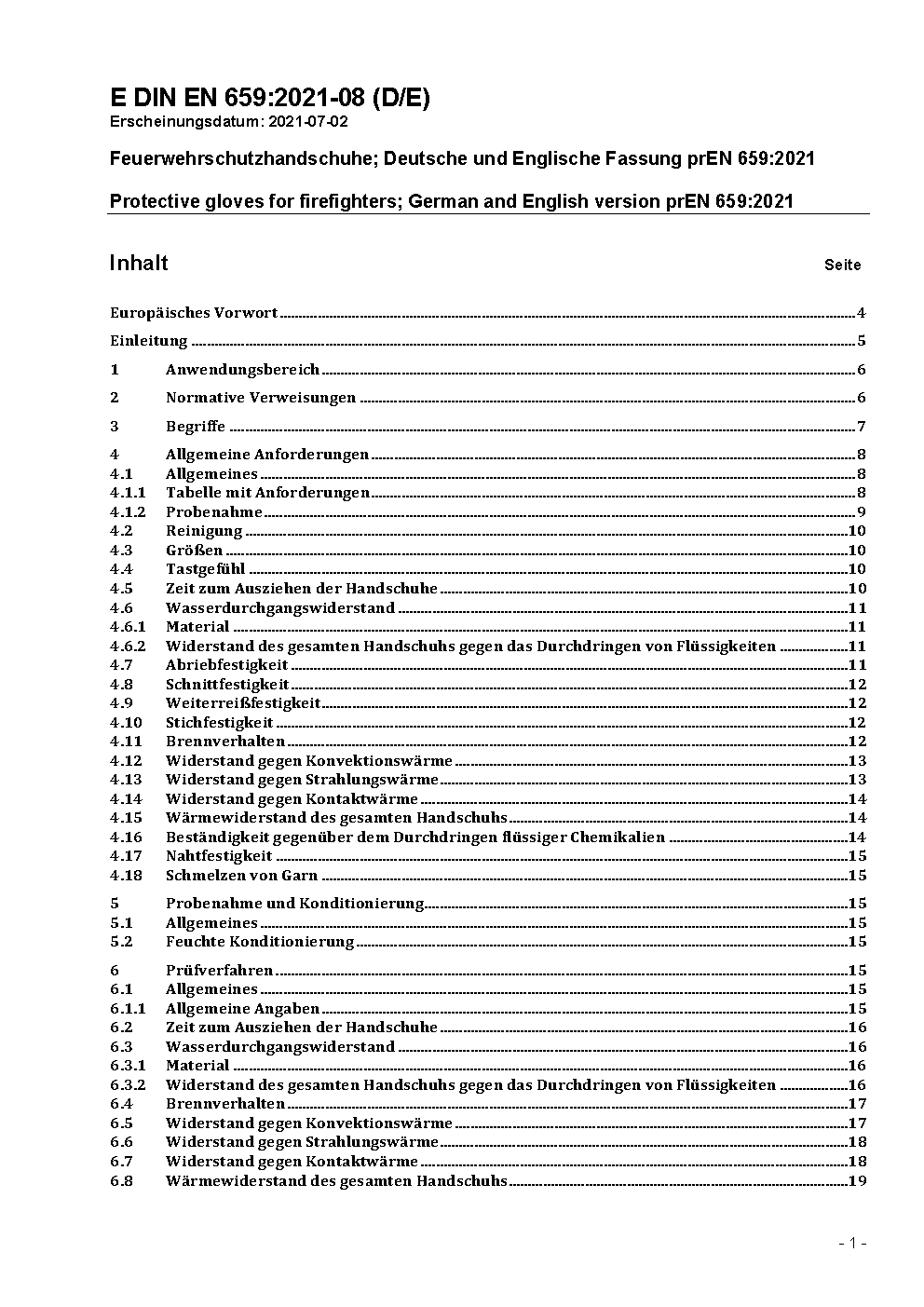 Feuerwehrschutzhandschuhe; Deutsche Fassung prEN 659:2000