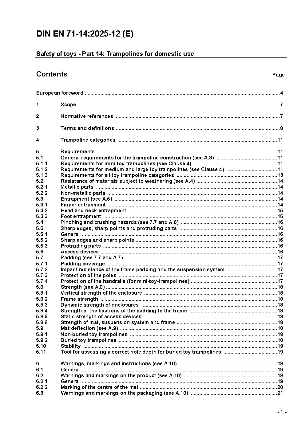 Safety of toys - Part 14: Trampolines for domestic use; German and English version prEN 71-14:2017
