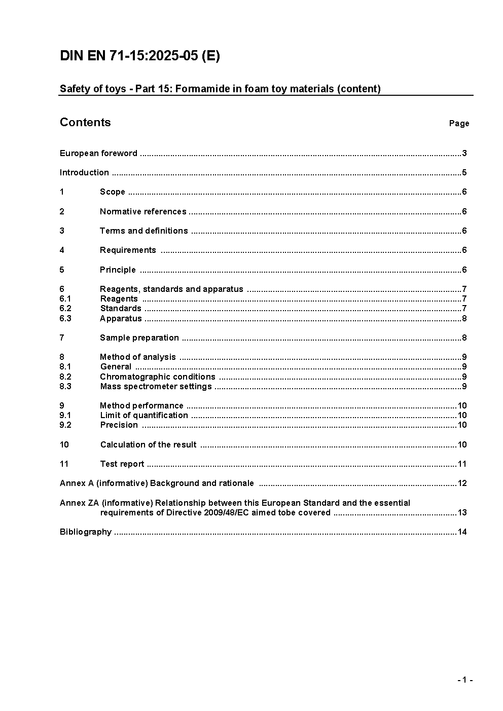 Safety of toys - Part 15: Formamide in foam toy materials; German and English version prEN 71-15:2023