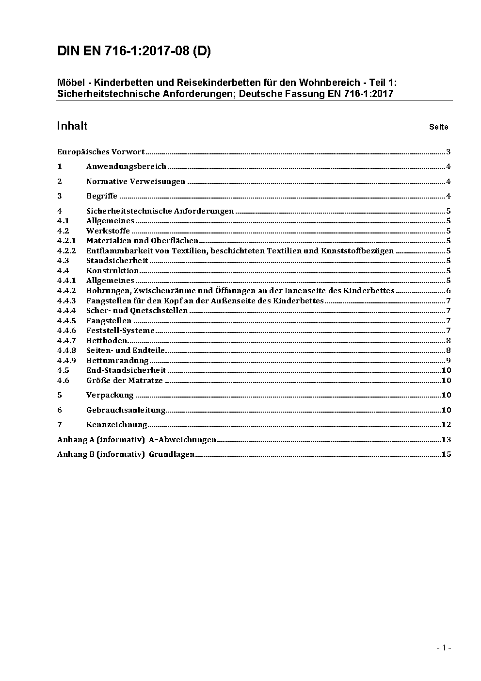Möbel - Kinderbetten und Reisekinderbetten für den Wohnbereich - Teil 1: Sicherheitstechnische Anforderungen; Deutsche Fassung EN 716-1:2008+A1:2013