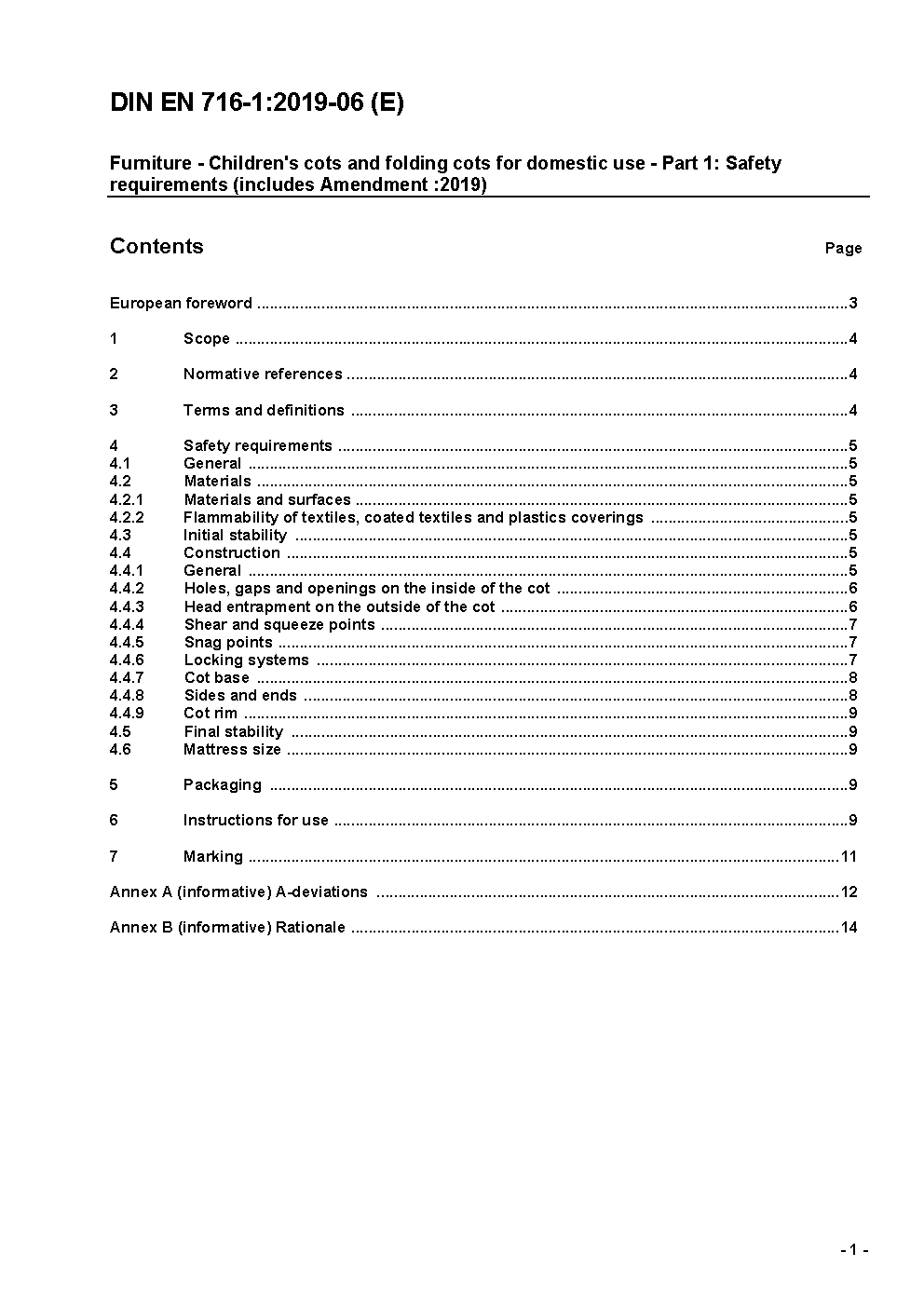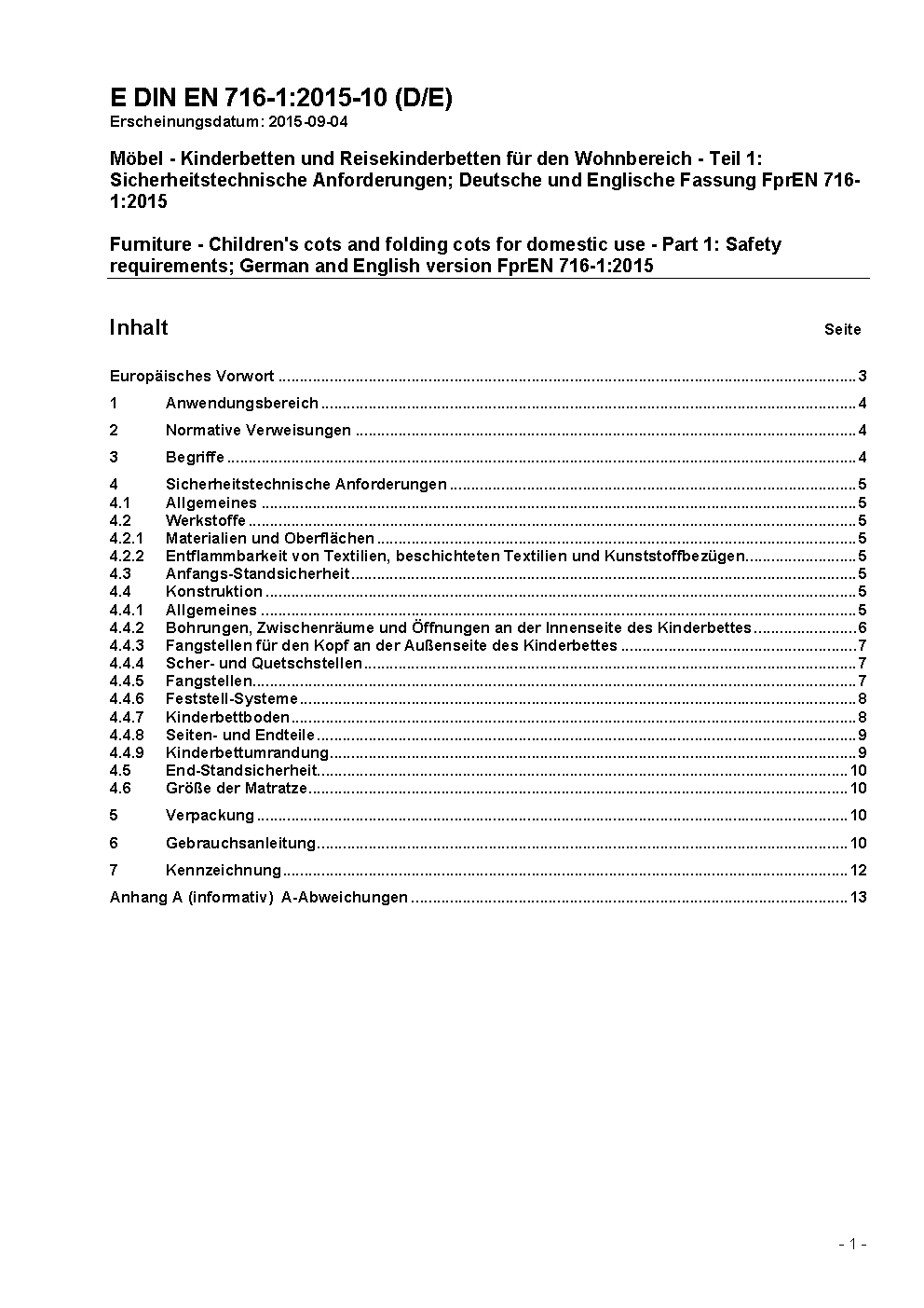 Furniture - Children's cots and folding cots for domestic use - Part 1: Safety requirements; German version EN 716-1:2008+A1:2013