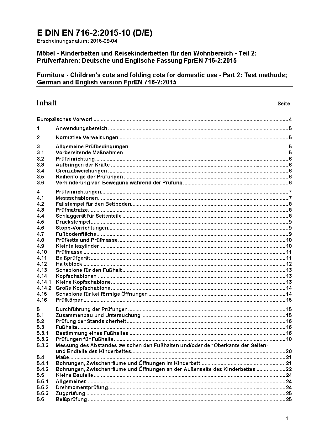 Möbel - Kinderbetten und Reisekinderbetten für den Wohnbereich - Teil 2: Prüfverfahren; Deutsche Fassung EN 716-2:2008+A1:2013