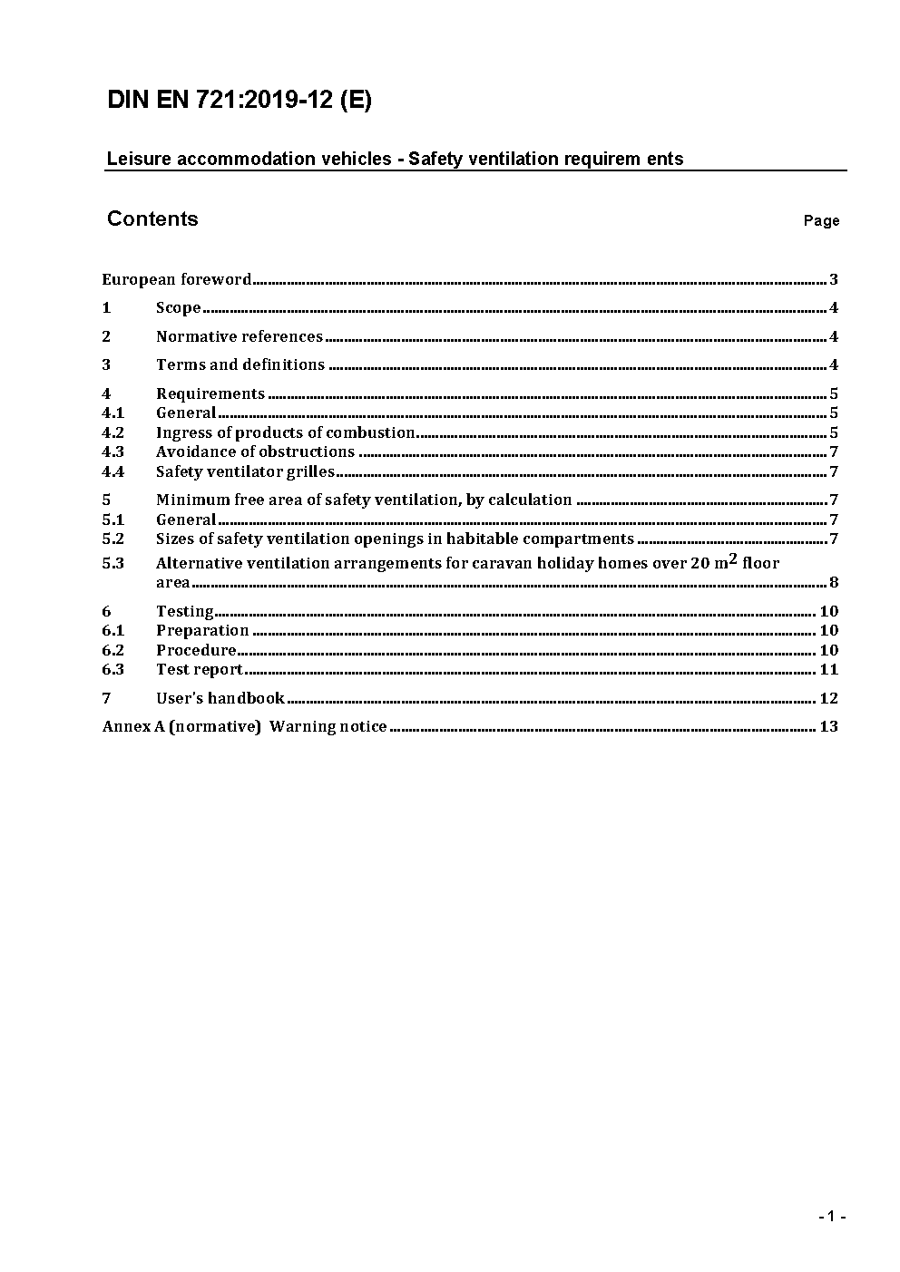 Bewohnbare Freizeitfahrzeuge - Anforderungen an die Sicherheitslüftung; Deutsche Fassung prEN 721:2002