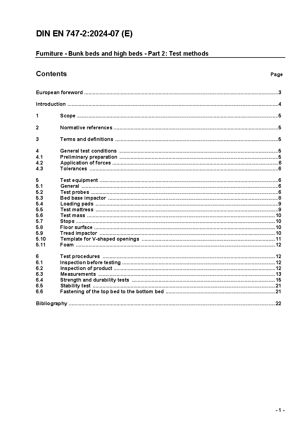 Furniture - Bunk beds and high beds - Part 2: Test methods; German version EN 747-2:2012/prA1:2013