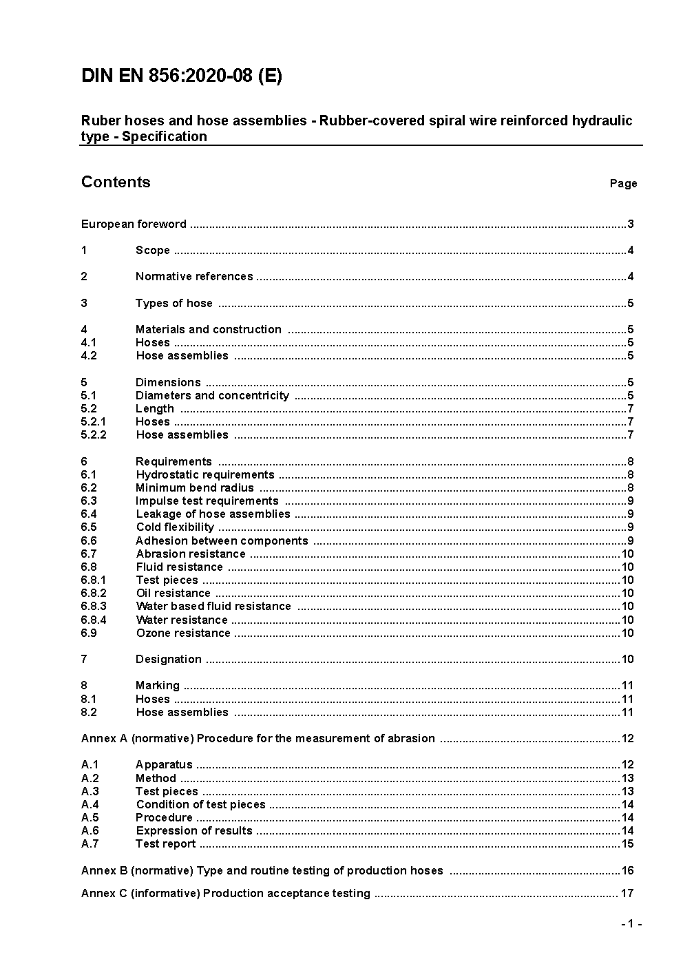 Rubber hoses and hose assemblies - Rubber-covered spiral wire reinforced hydraulic type - Specification; German version EN 856:1996