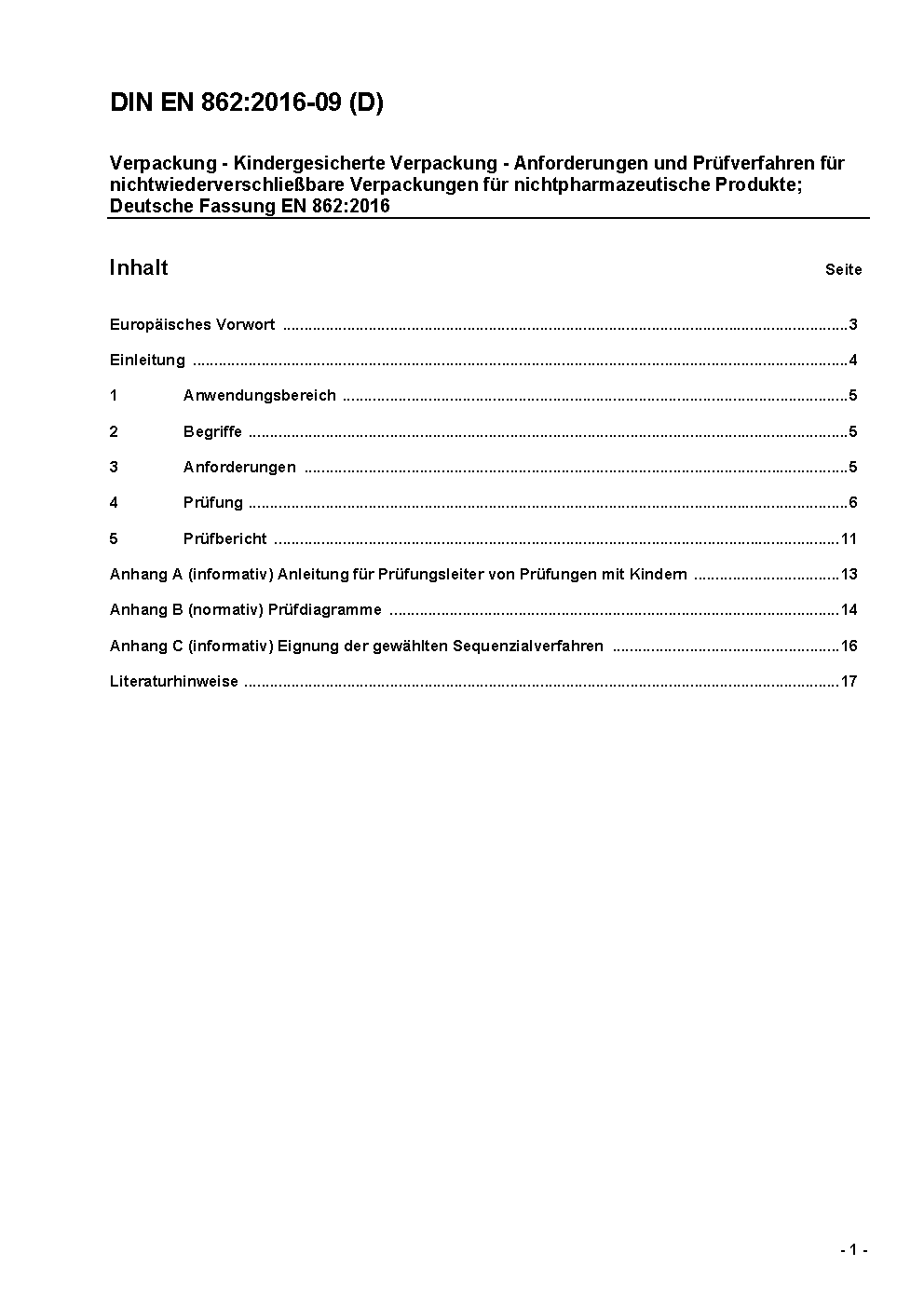 Verpackung - Kindergesicherte Verpackung - Anforderungen und Prüfverfahren für nichtwiederverschließbare Verpackungen für nichtpharmazeutische Produkte; Deutsche Fassung EN 862:2005