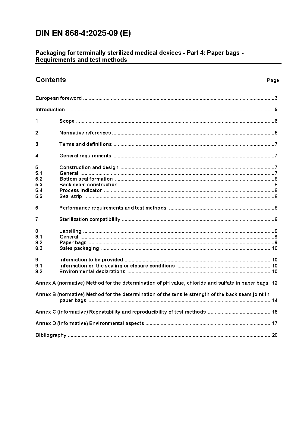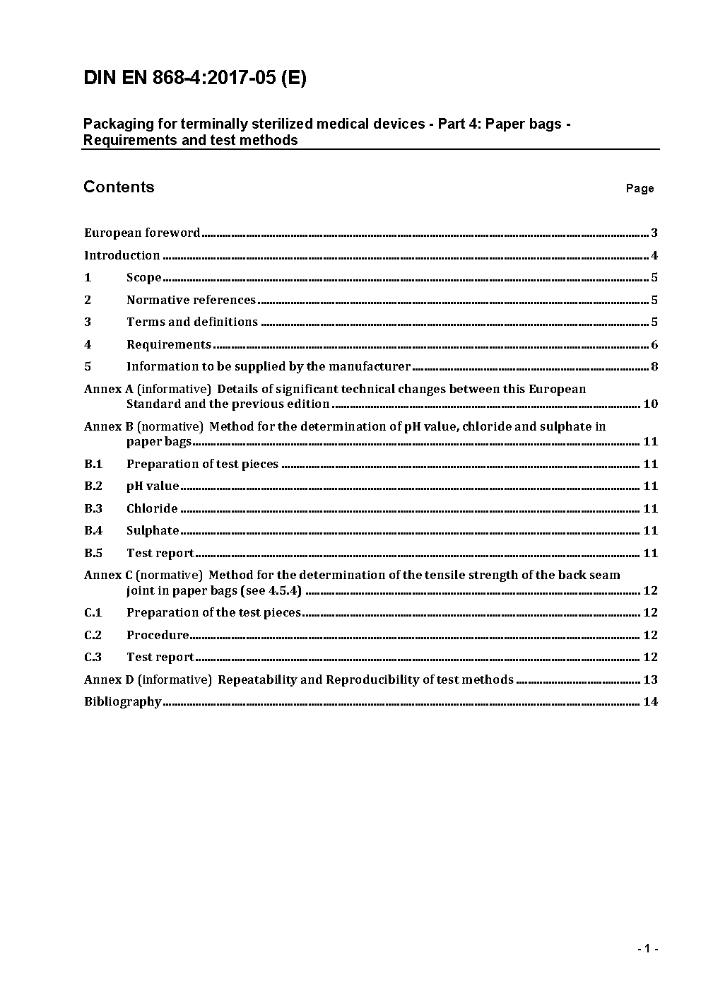 Packaging for terminally sterilized medical devices - Part 4: Paper bags - Requirements and test methods; German version EN 868-4:2017