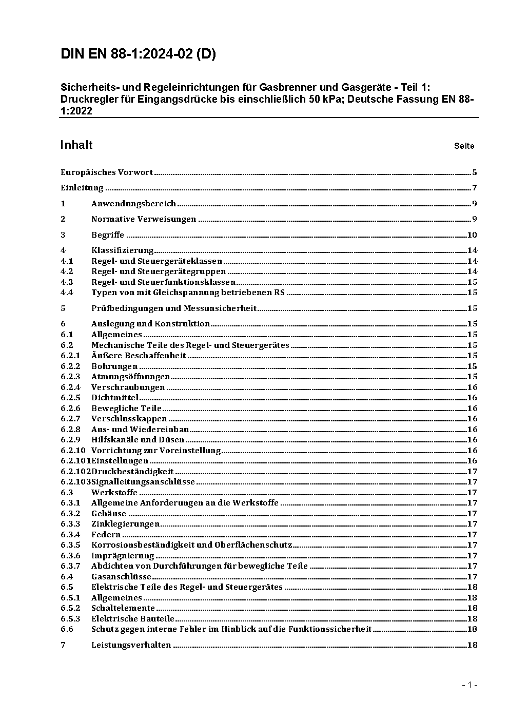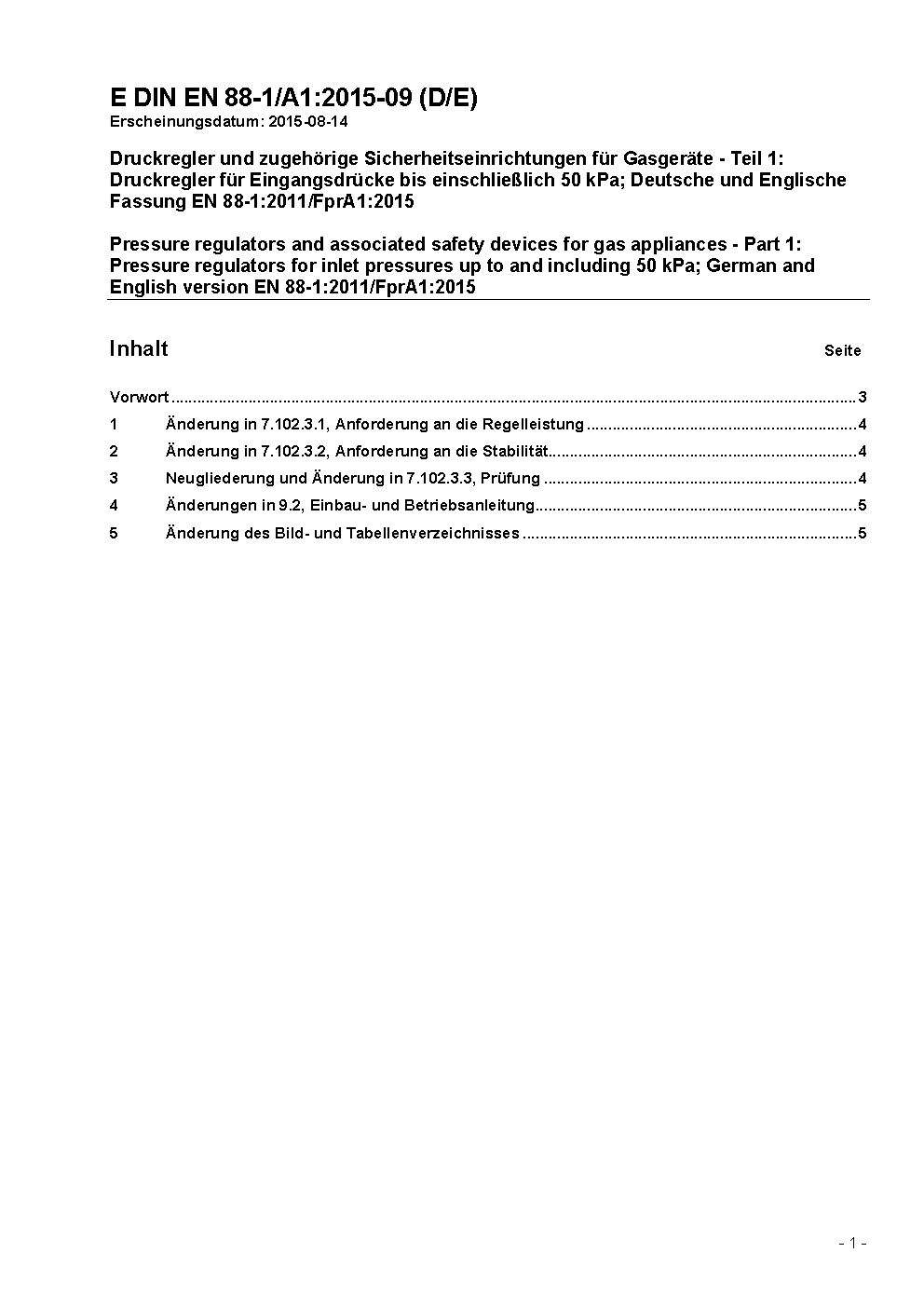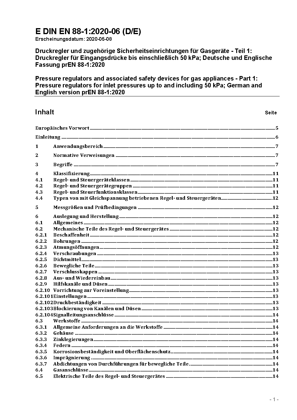 Druckregler und zugehörige Sicherheitseinrichtungen für Gasgeräte - Teil 1: Druckregler für Eingangsdrücke bis einschließlich 500 mbar; Deutsche Fassung EN 88-1:2007