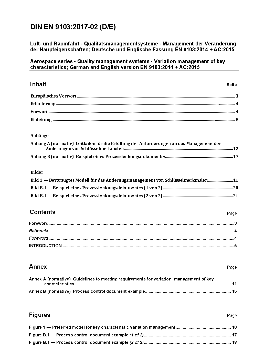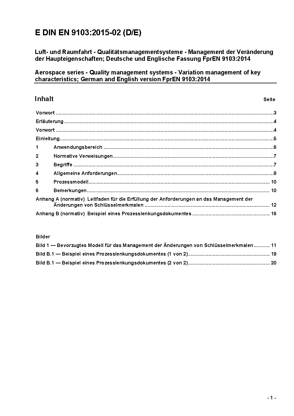 Luft- und Raumfahrt - Qualitätsmanagementsysteme - Variationsmanagement für Schlüsselmerkmale; Deutsche und Englische Fassung prEN 9103:2022