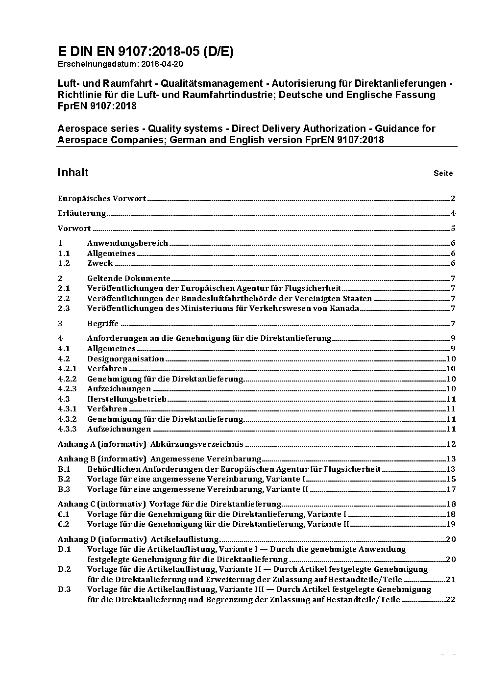 Aerospace series - Quality systems - Direct Delivery Authorization - Guidance for Aerospace Companies; German and English version EN 9107:2018