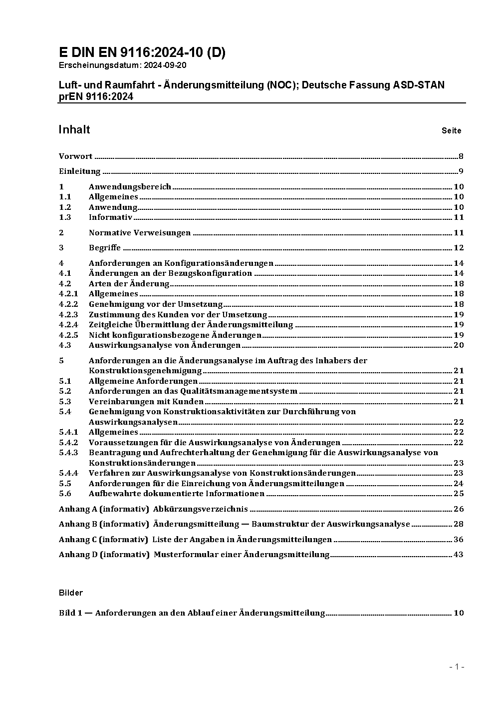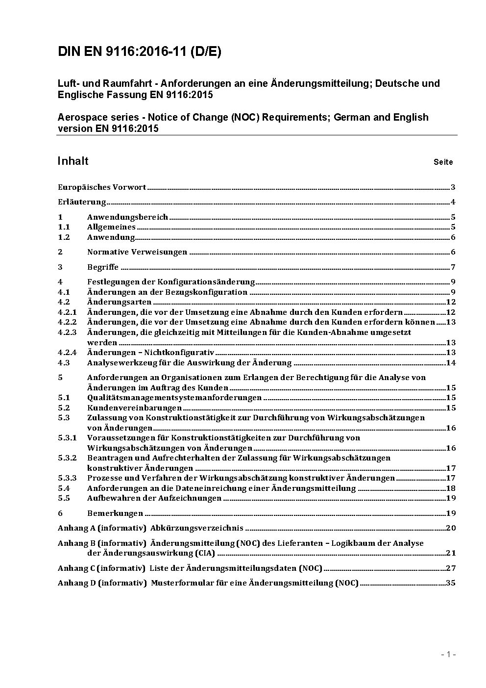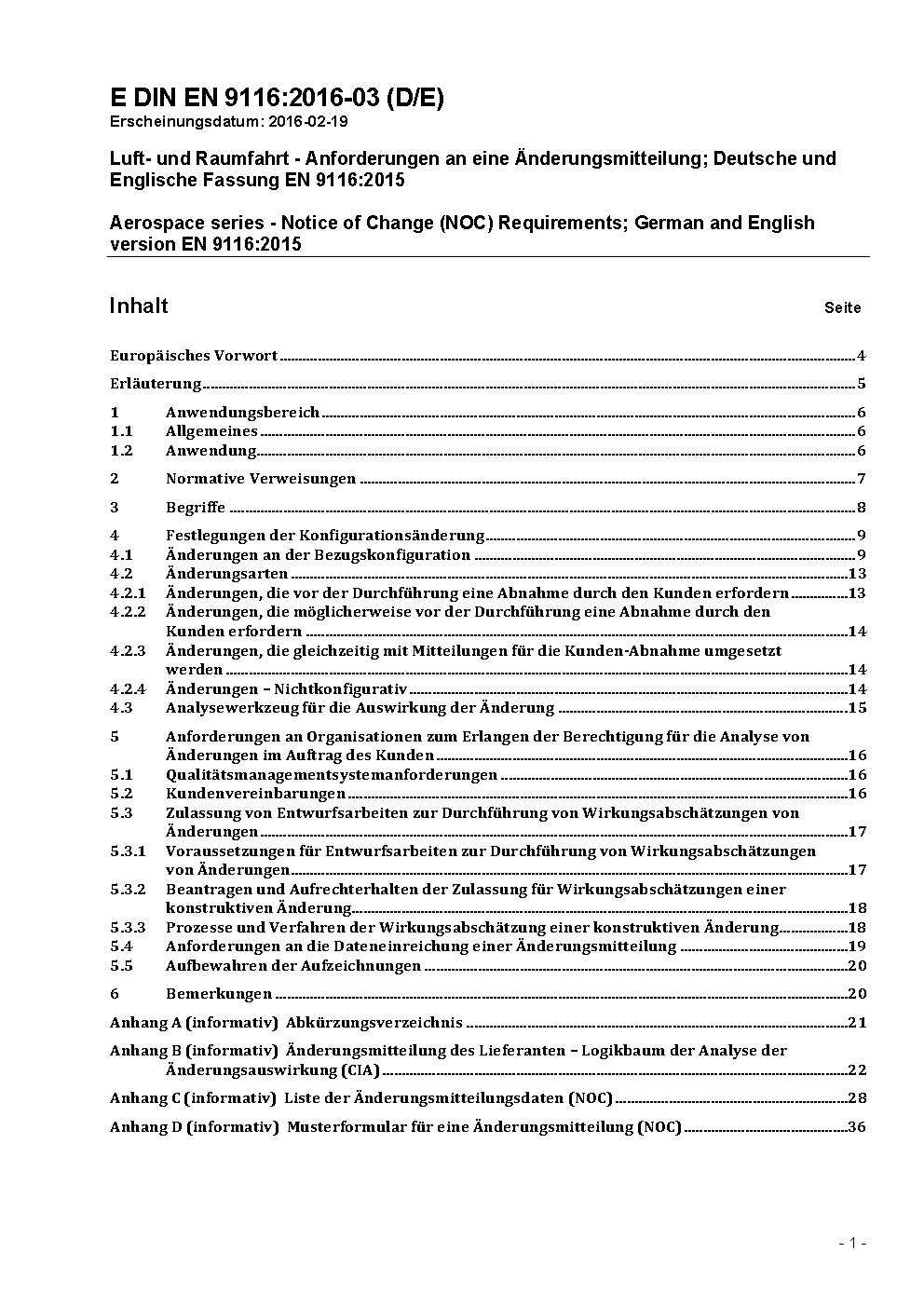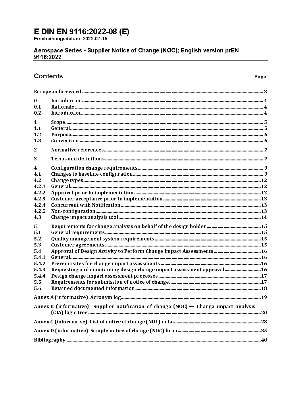 Luft- und Raumfahrt - Änderungsmitteilung (NOC) des Lieferanten; Englische Fassung prEN 9116:2022