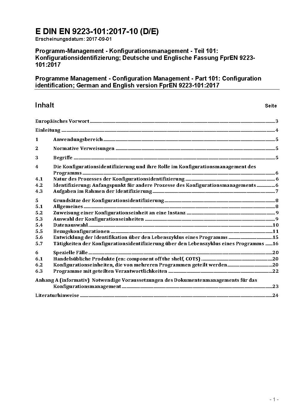 Programm-Management - Konfigurationsmanagement - Teil 101: Konfigurationsidentifizierung; Deutsche und Englische Fassung FprEN 9223-101:2017