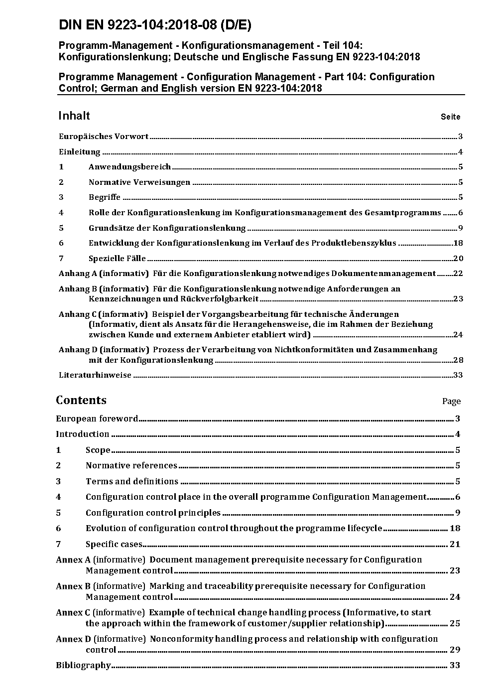 Programm-Management - Konfigurationsmanagement - Teil 104: Konfigurationslenkung; Deutsche und Englische Fassung EN 9223-104:2018
