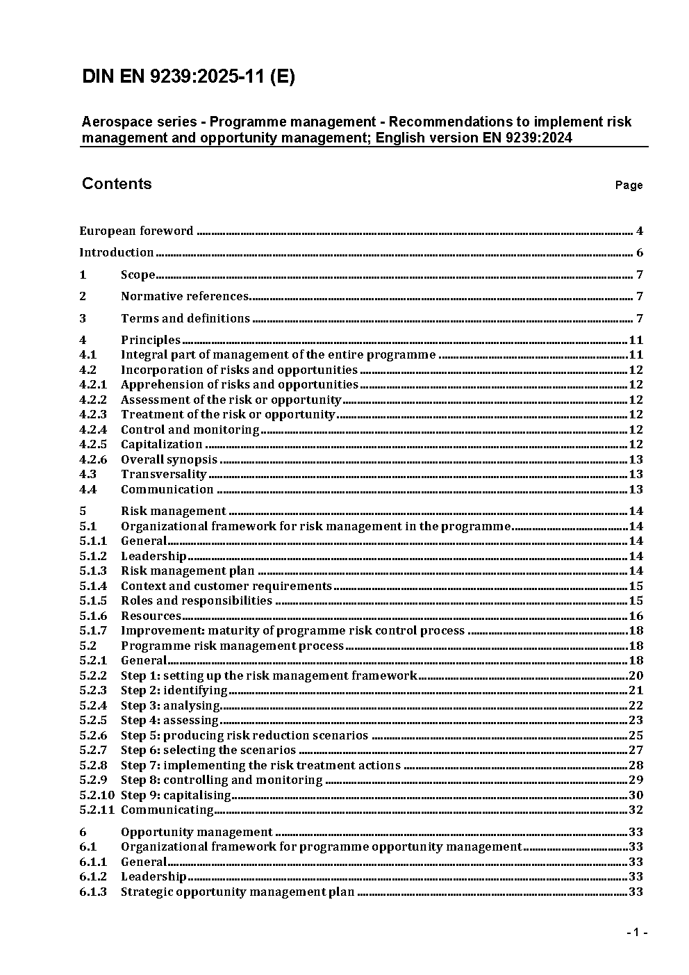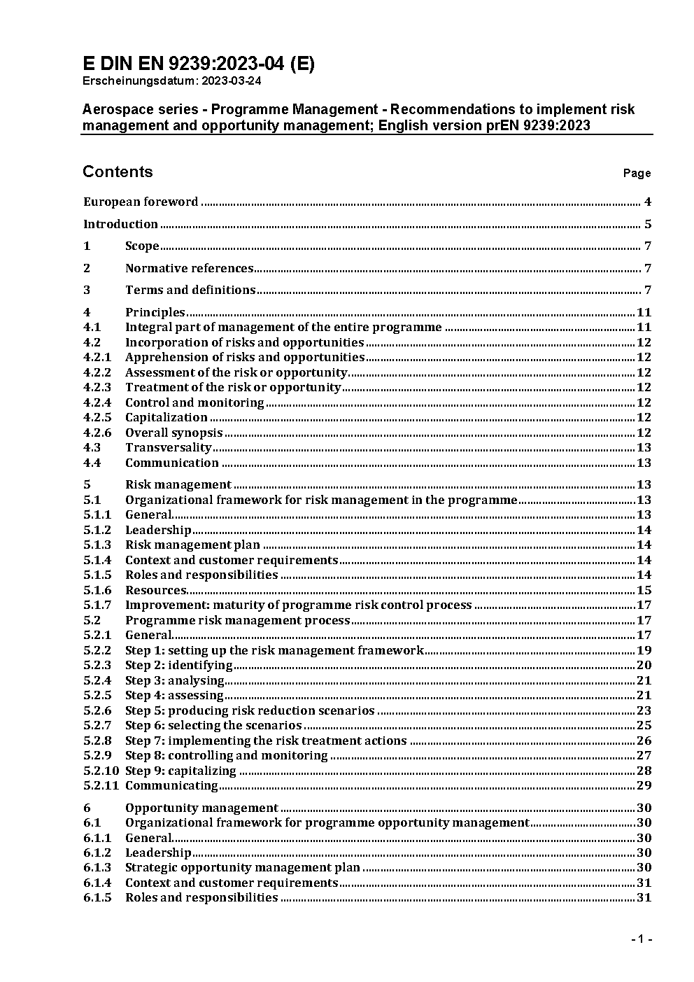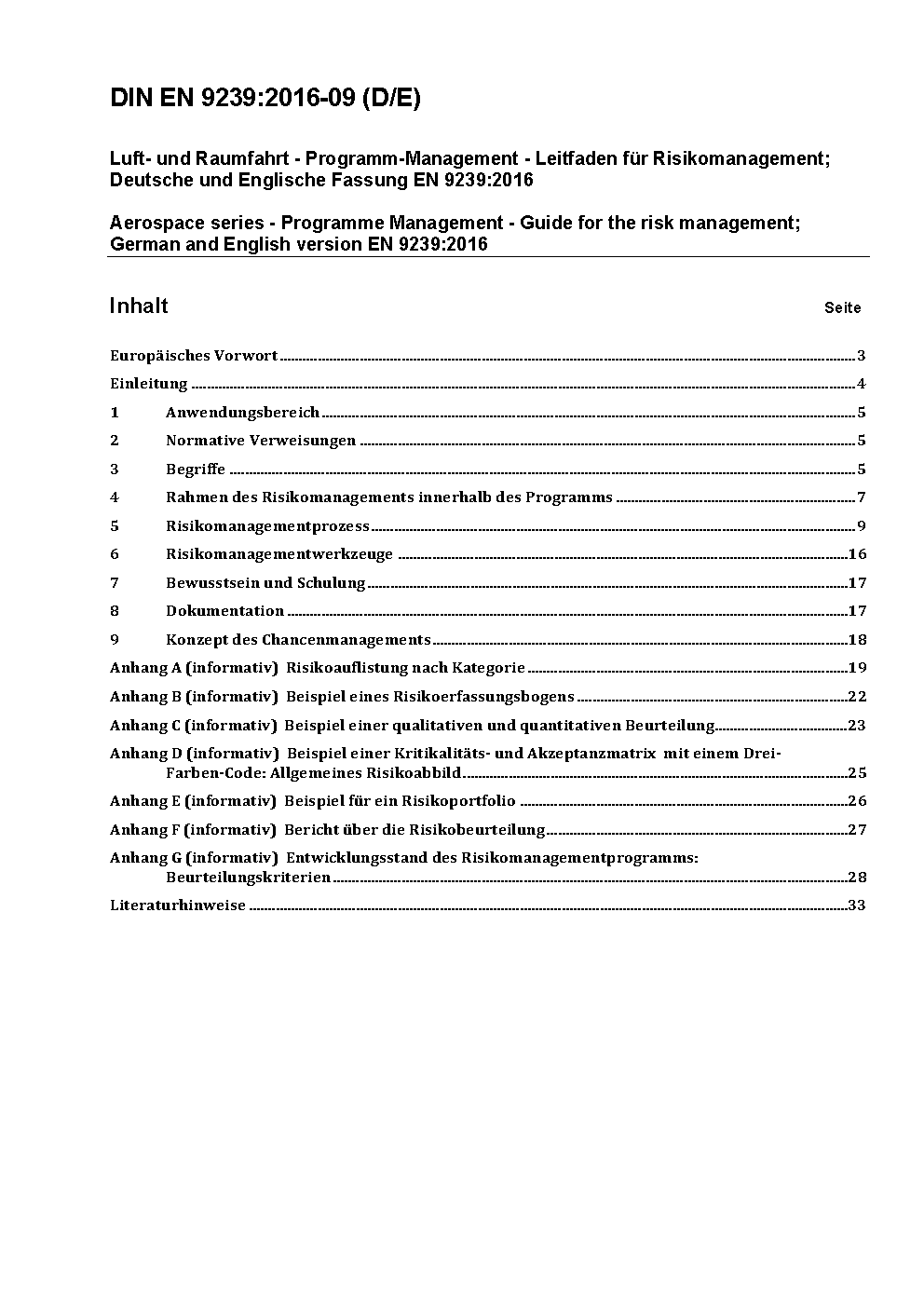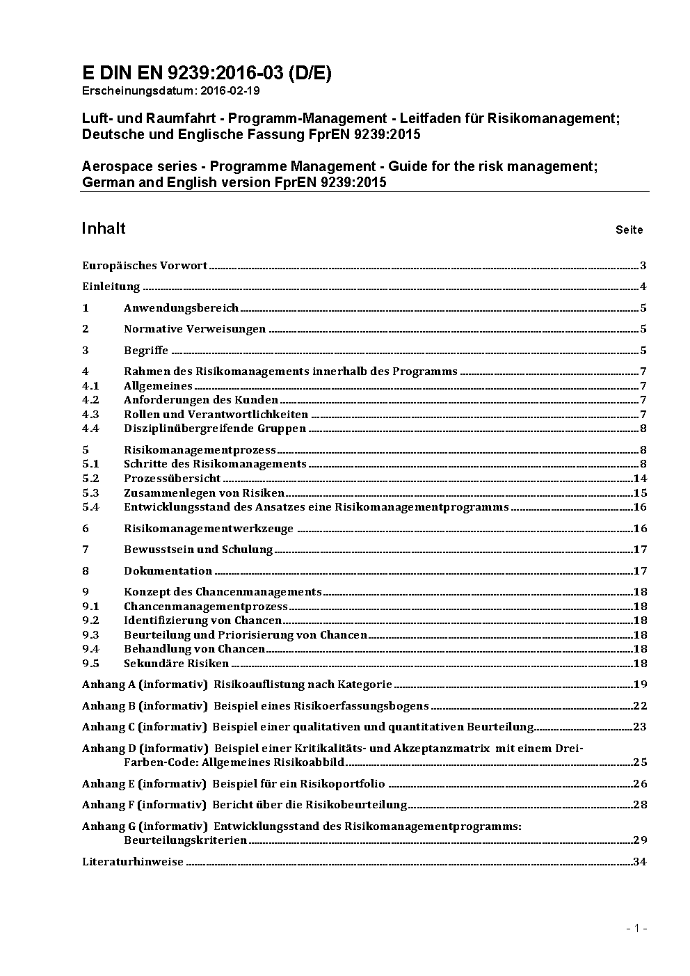 Aerospace series - Programme Management - Guide for the risk management; German and English version EN 9239:2016
