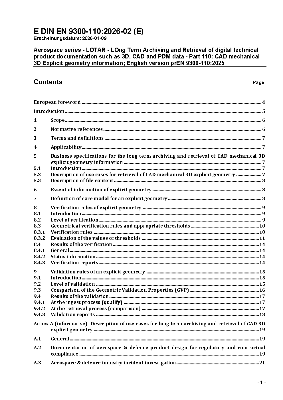 Aerospace series - LOTAR - LOng Term Archiving and Retrieval of digital technical product documentation such as 3D, CAD and PDM data - Part 110: CAD mechanical 3D Explicit geometry information; German and English version EN 9300-110:2018