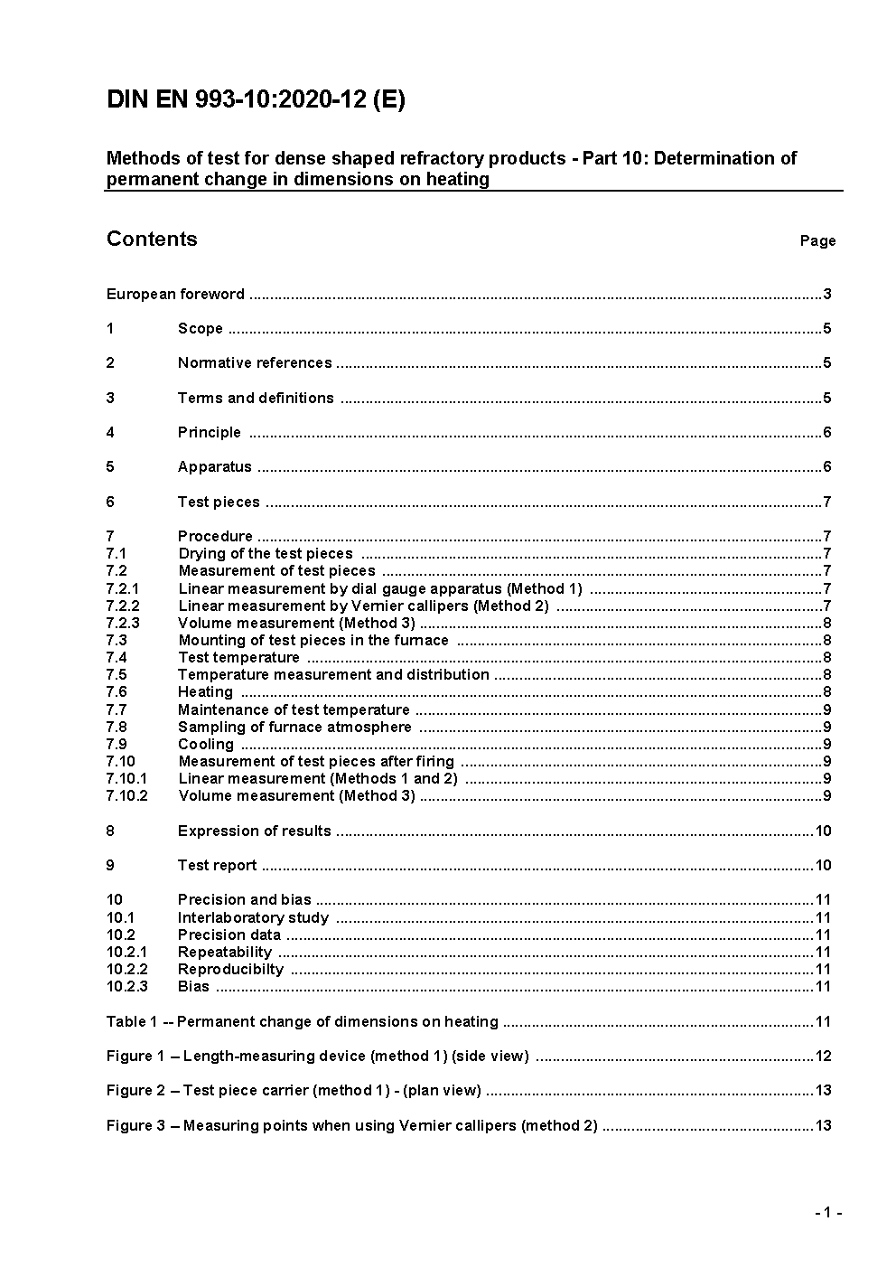 Methods of test for dense shaped refractory products - Part 10: Determination of permanent change in dimensions on heating; German version EN 993-10:1997