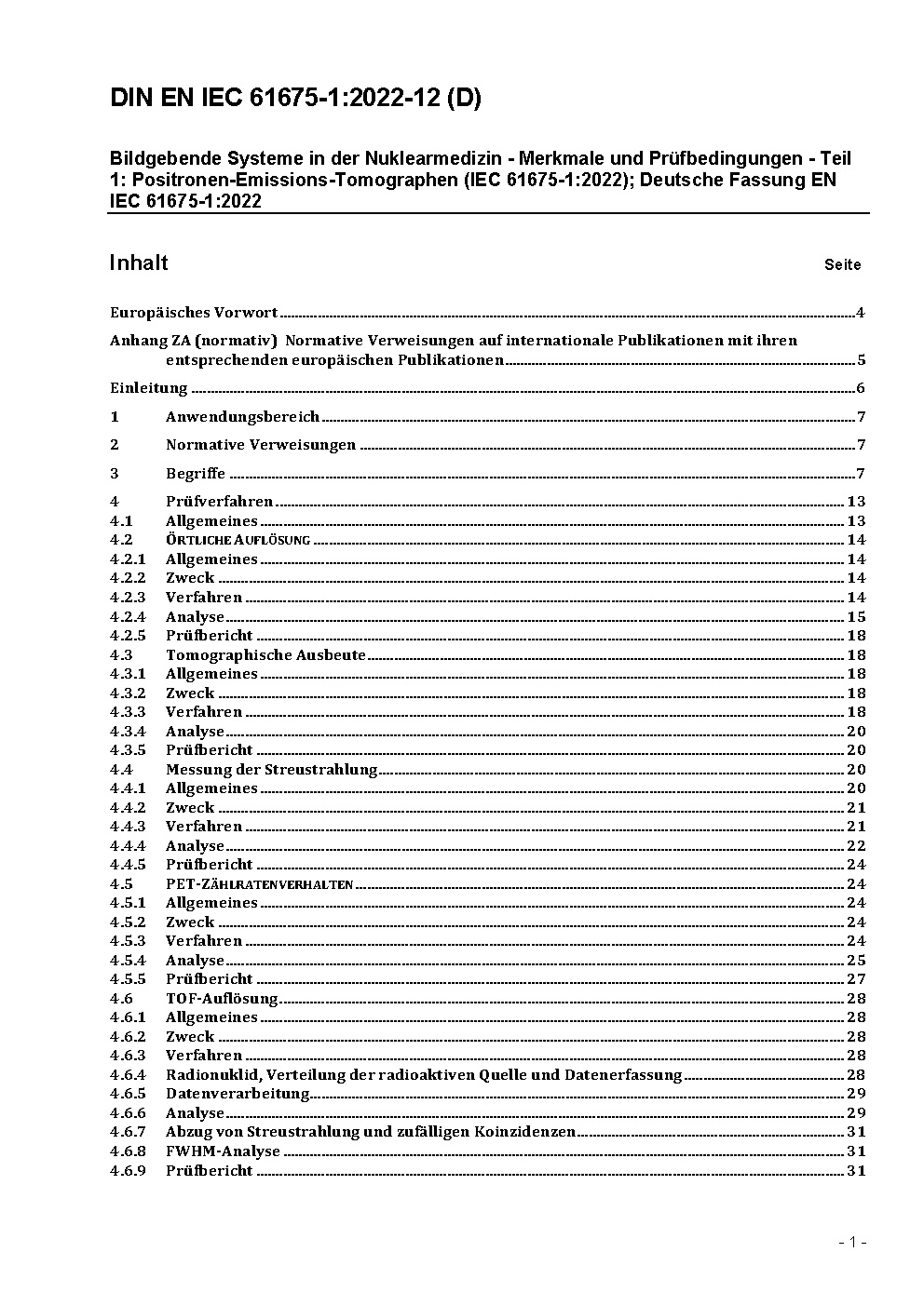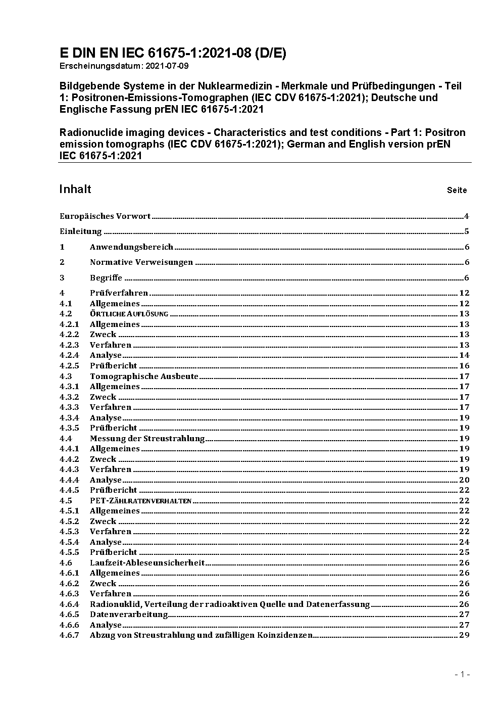 Bildgebende Systeme in der Nuklearmedizin - Merkmale und Prüfbedingungen - Teil 1: Positronen-Emissions-Tomographen (IEC CDV 61675-1:2021); Deutsche und Englische Fassung prEN IEC 61675-1:2021