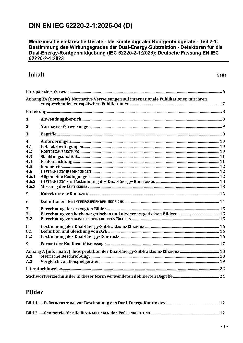 Medizinische elektrische Geräte - Merkmale digitaler Röntgenbildgeräte - Teil 2-1: Bestimmung des Wirkungsgrades der Dual-Energy-Subtraktion - Detektoren für die Dual-Energy-Röntgenbildgebung (IEC 62220-2-1:2023); Deutsche Fassung EN IEC 62220-2-1:2023