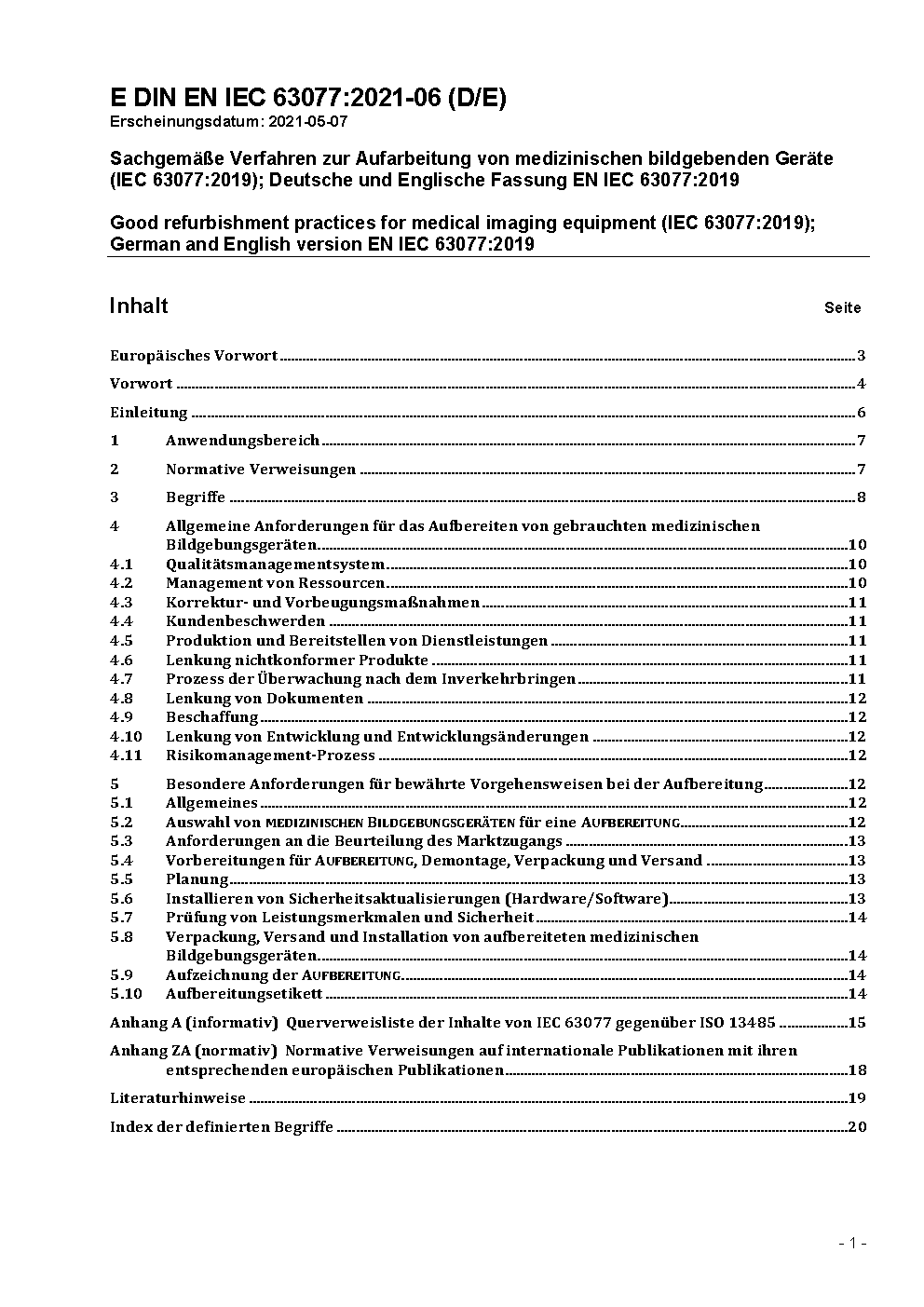 Good refurbishment practices for medical imaging equipment (IEC 63077:2019); German and English version EN IEC 63077:2019
