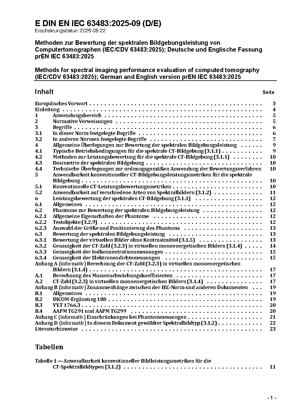 Methoden zur Bewertung der spektralen Bildgebungsleistung von Computertomographen (IEC/CDV 63483:2025); Deutsche und Englische Fassung prEN IEC 63483:2025