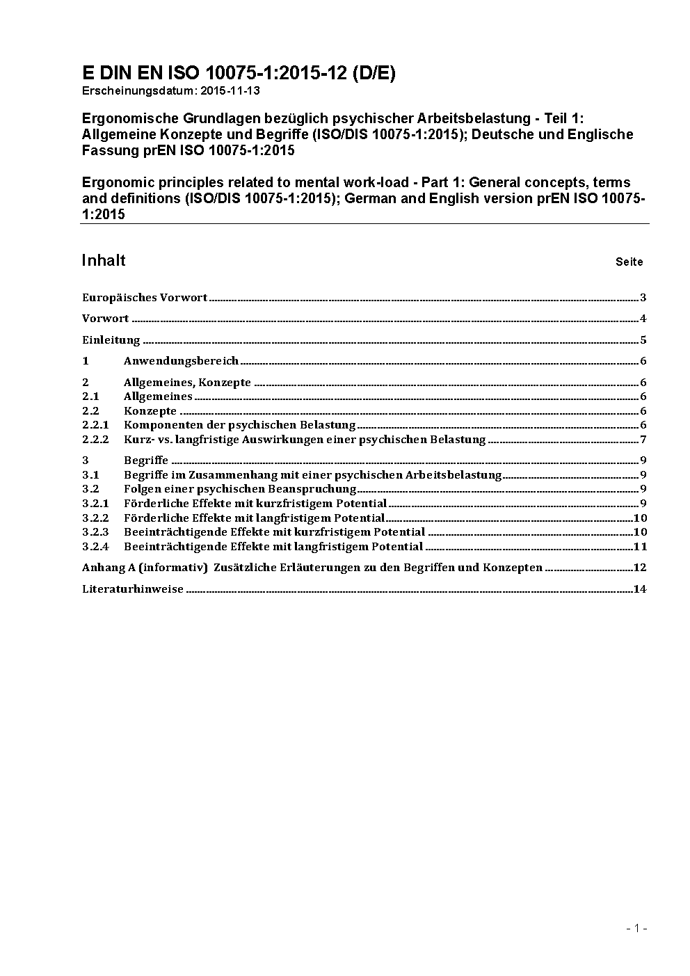 Ergonomische Grundlagen bezüglich psychischer Arbeitsbelastung - Teil 1: Allgemeines und Begriffe (ISO 10075:1991); Deutsche Fassung EN ISO 10075-1:2000