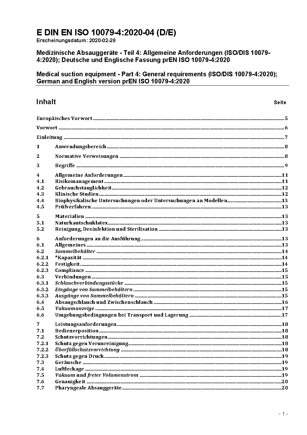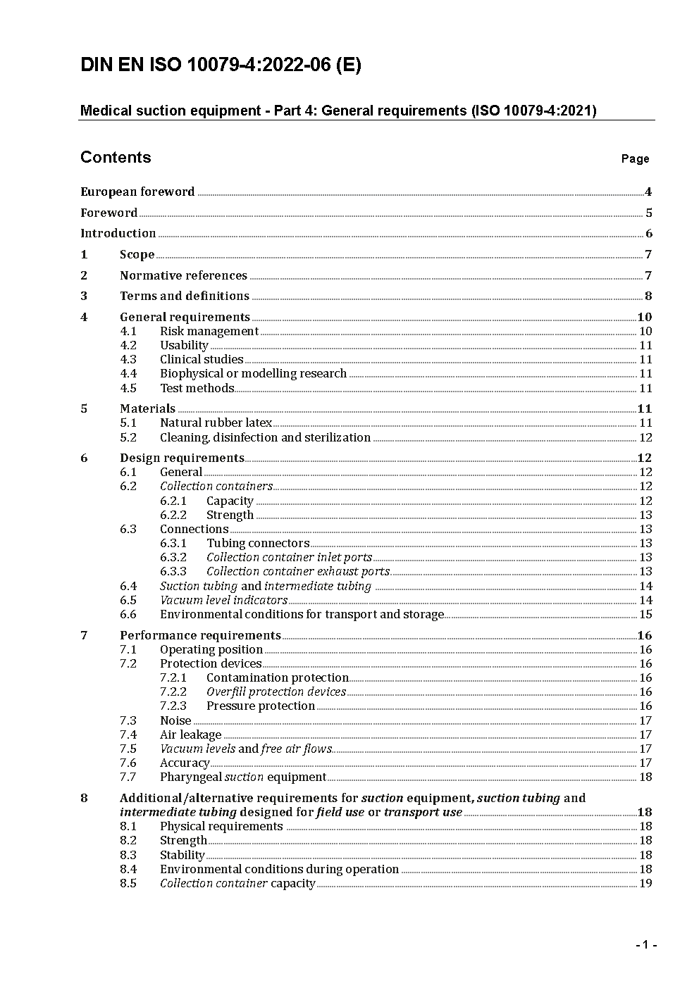Medizinische Absauggeräte - Teil 4: Allgemeine Anforderungen (ISO 10079-4:2021); Deutsche Fassung EN ISO 10079-4:2021