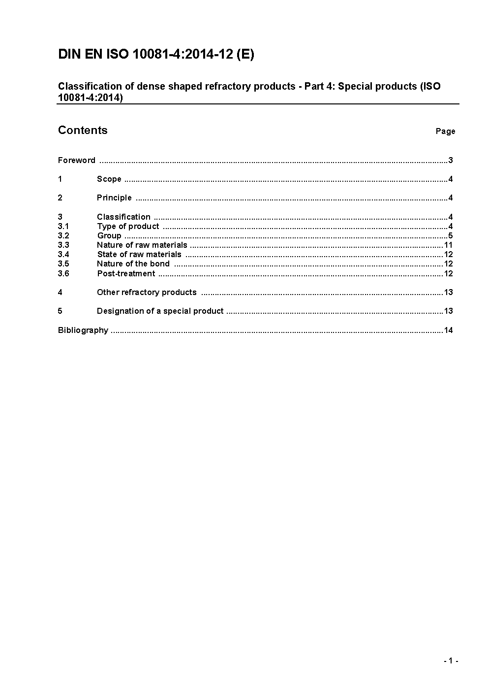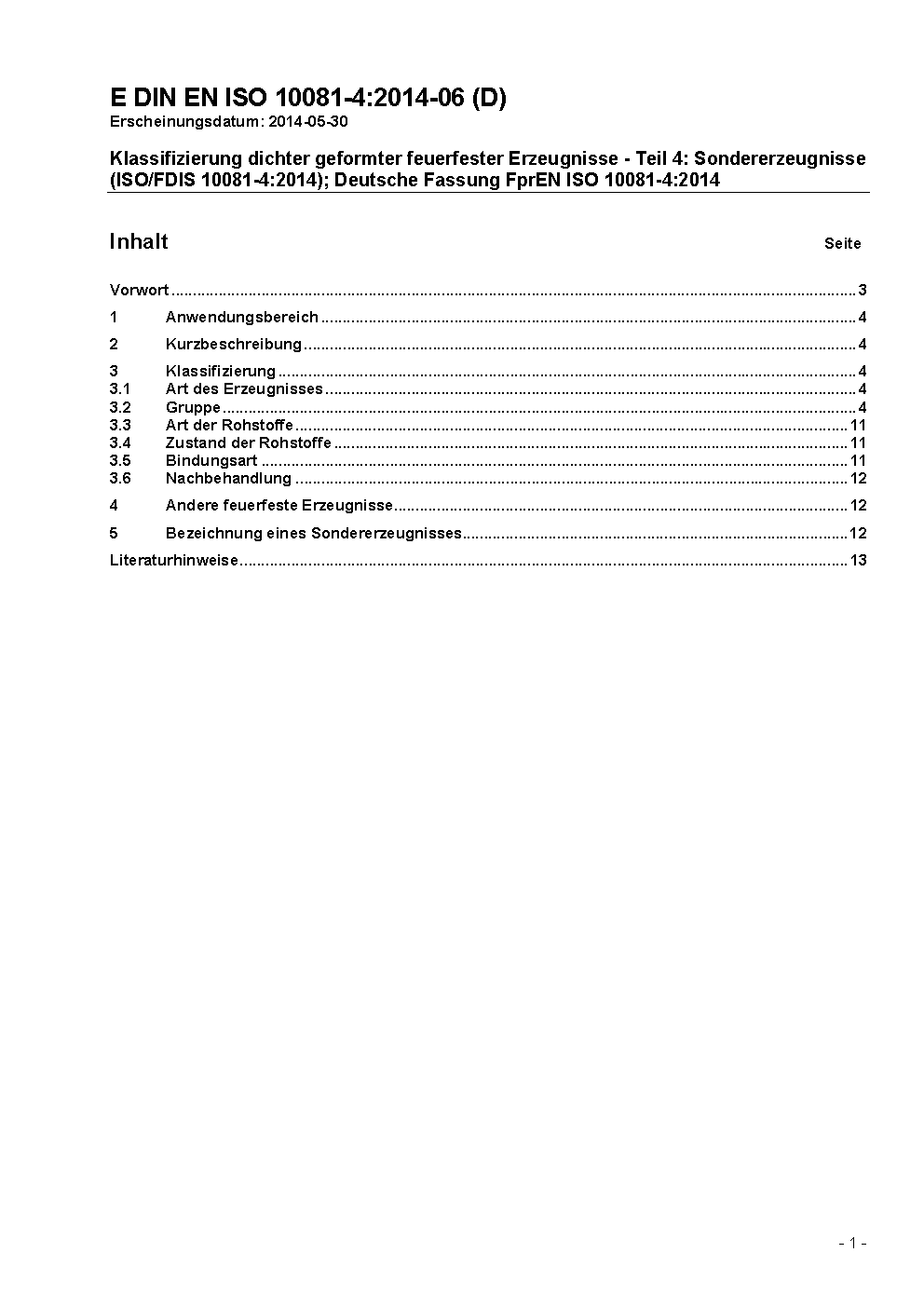 Klassifizierung dichter geformter feuerfester Erzeugnisse - Teil 4: Sondererzeugnisse (ISO/FDIS 10081-4:2014); Deutsche Fassung FprEN ISO 10081-4:2014