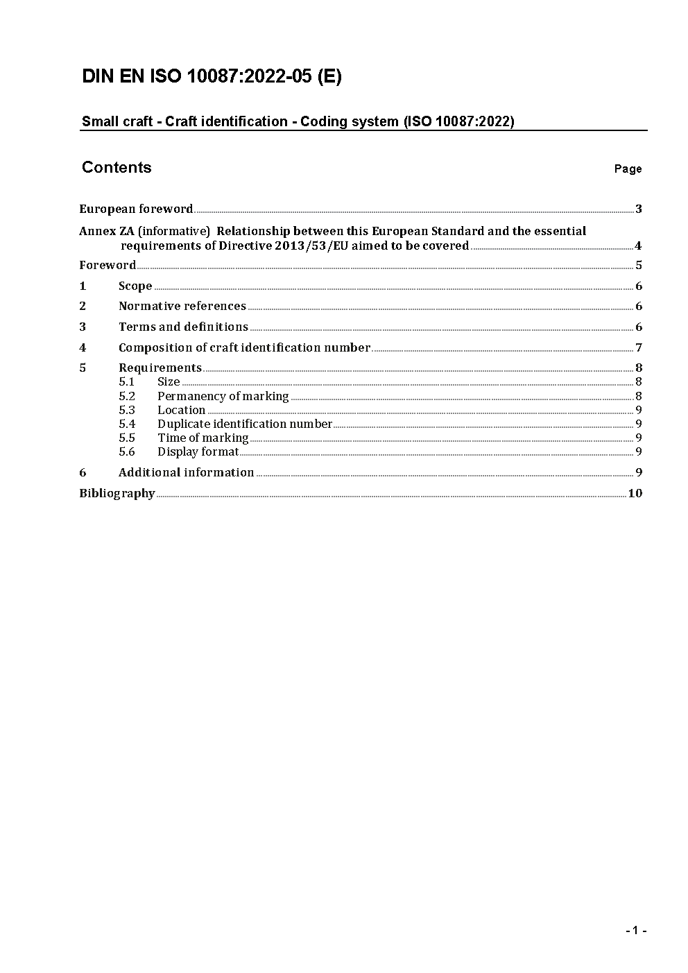 Small craft - Craft identification - Coding system (ISO 10087:2006); German version EN ISO 10087:2006