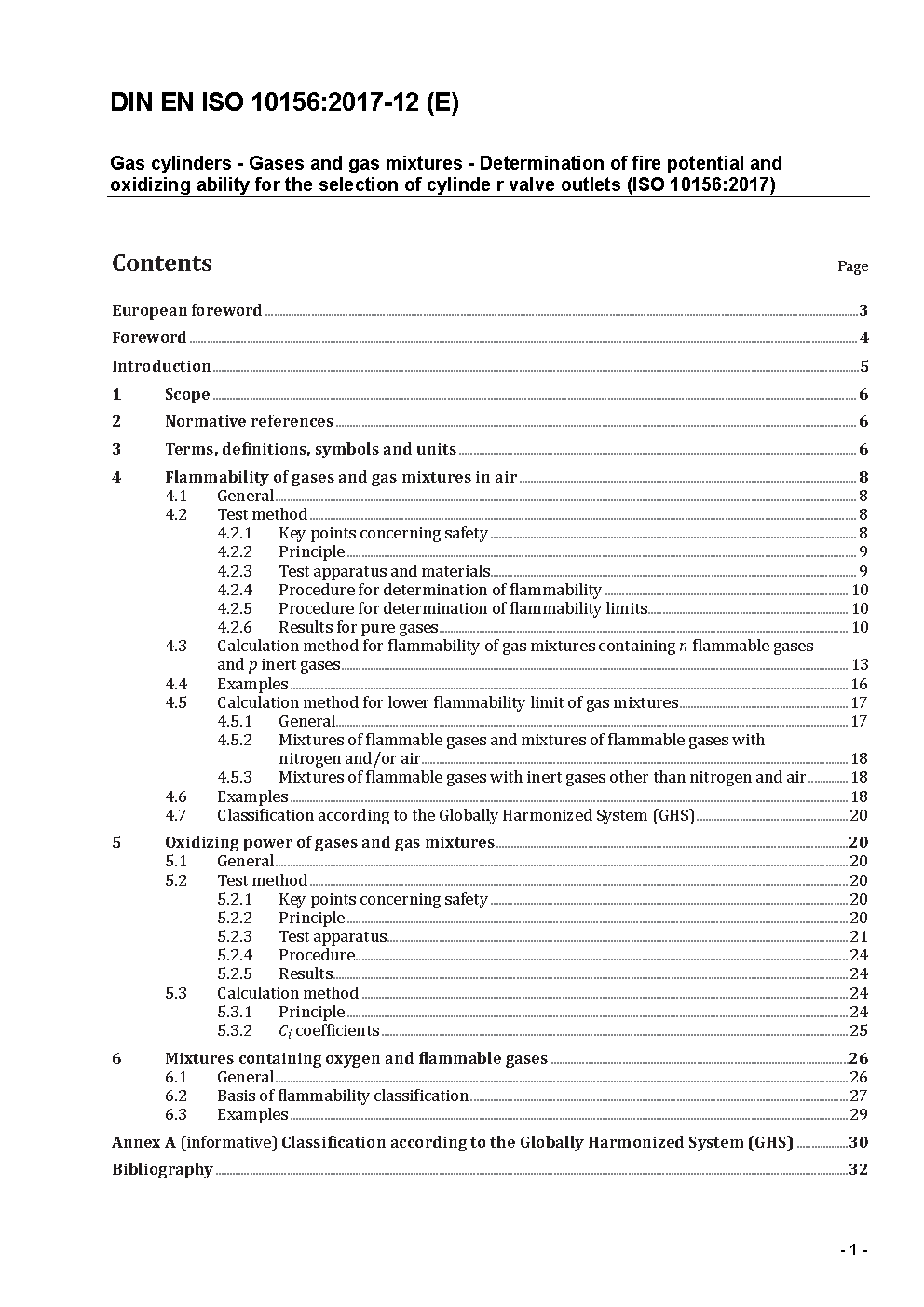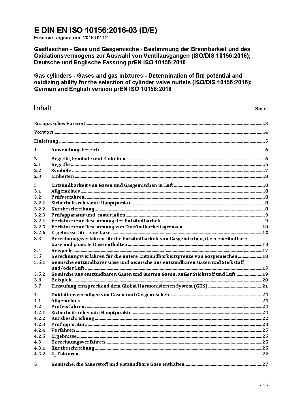 Gasflaschen - Gase und Gasgemische - Bestimmung der Brennbarkeit und des Oxidationsvermögens zur Auswahl von Ventilausgängen (ISO 10156:2017); Deutsche Fassung EN ISO 10156:2017