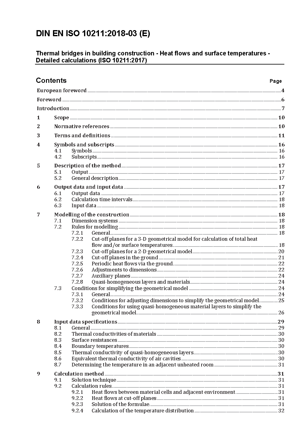 Thermal bridges in building construction - Heat flows and surface temperatures - Detailed calculations (ISO 10211:2007); German version EN ISO 10211:2007