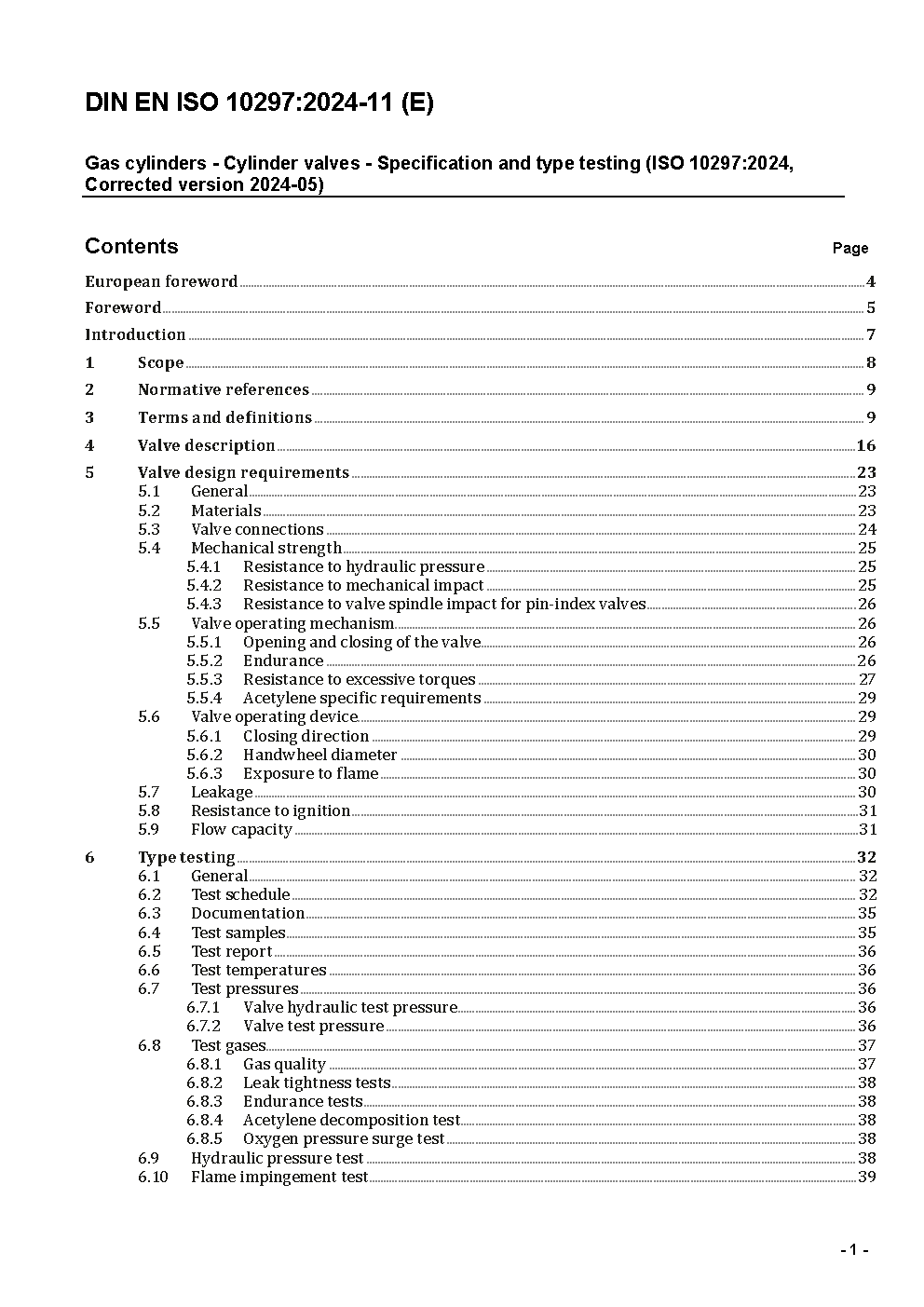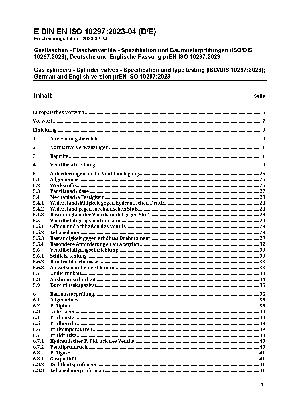 Gas cylinders - Cylinder valves - Specification and type testing (ISO 10297:2014, Corrected Version 2014-11-01 + Amd.1:2017); German version EN ISO 10297:2014 + A1:2017