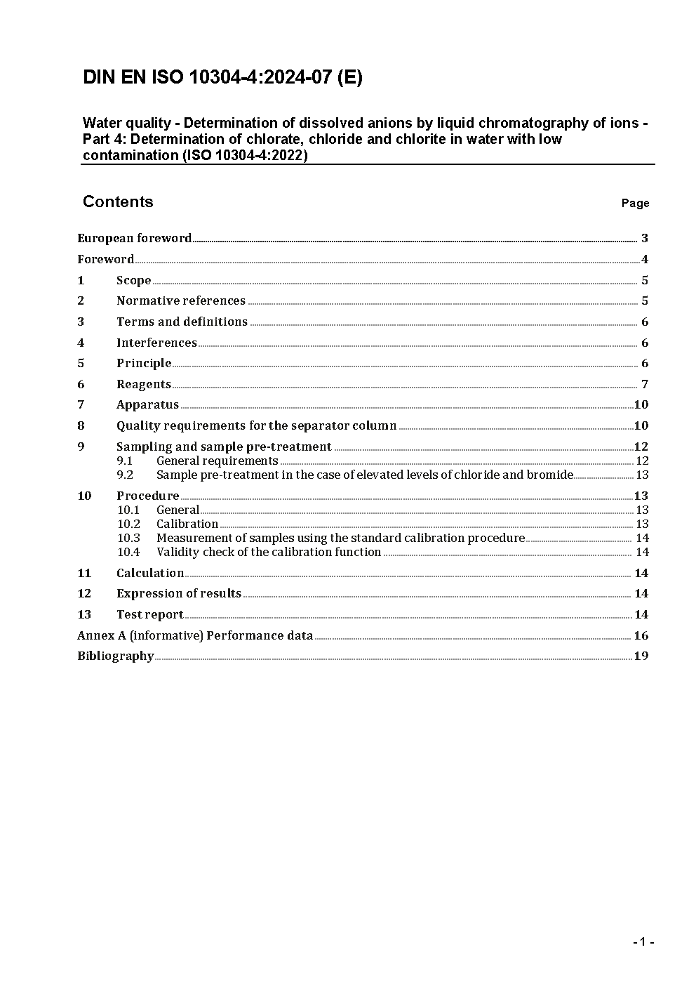 Water quality - Determination of dissolved anions by liquid chromatography of ions - Part 4: Determination of chlorate, chloride and chlorite in water with low contamination (ISO/DIS 10304-4:2020); German and English version prEN ISO 10304-4:2020