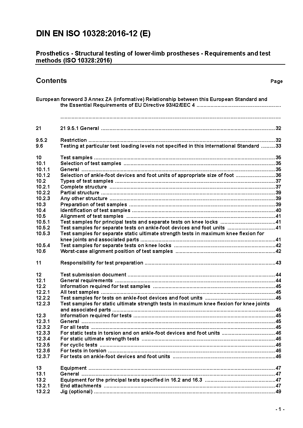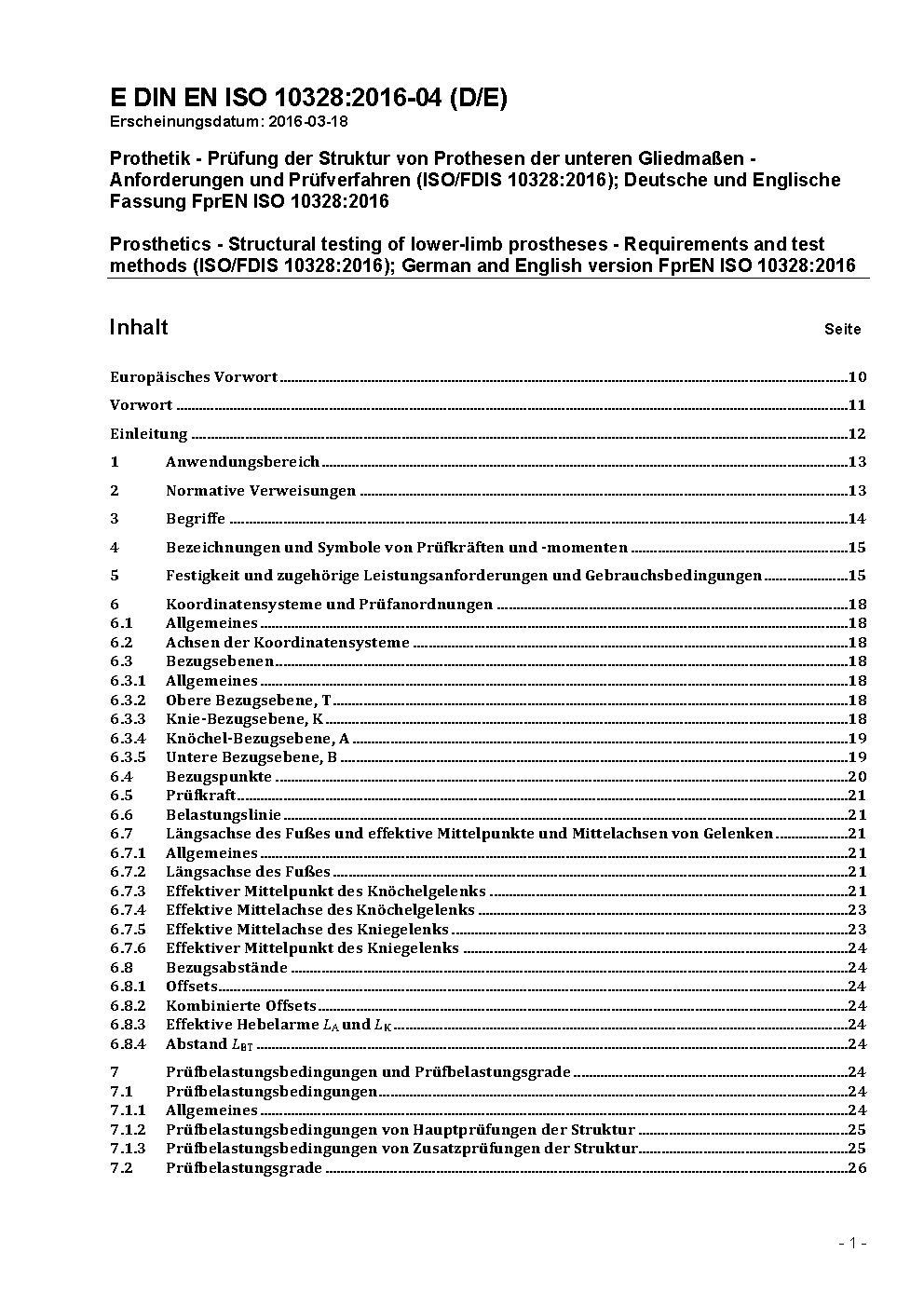 Prothetik - Prüfung der Struktur externer Prothesen für die unteren Gliedmaßen - Anforderungen und Prüfungen (ISO/DIS 10328:2003); Deutsche Fassung prEN ISO 10328:2003